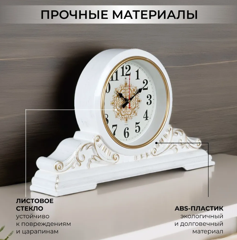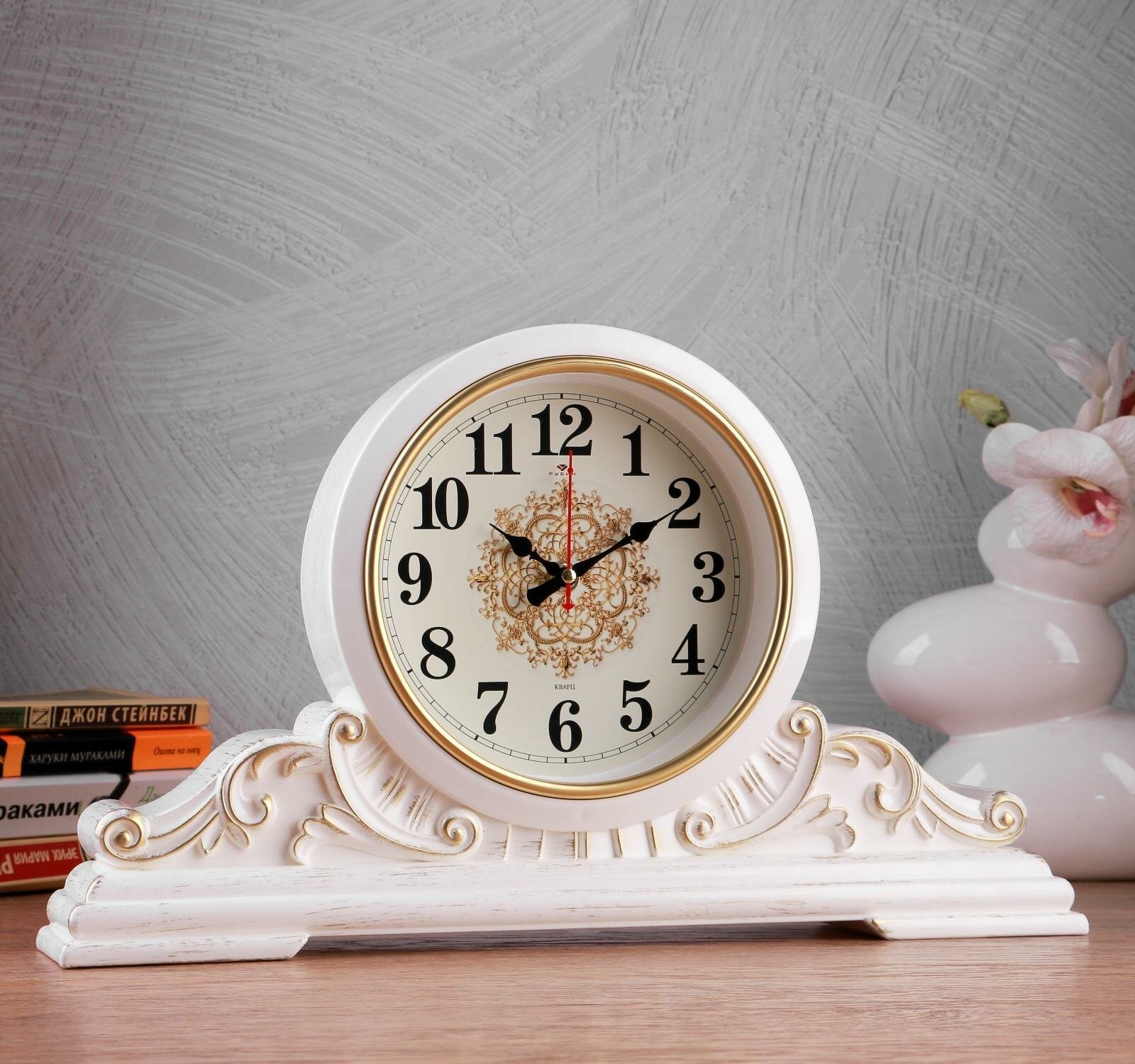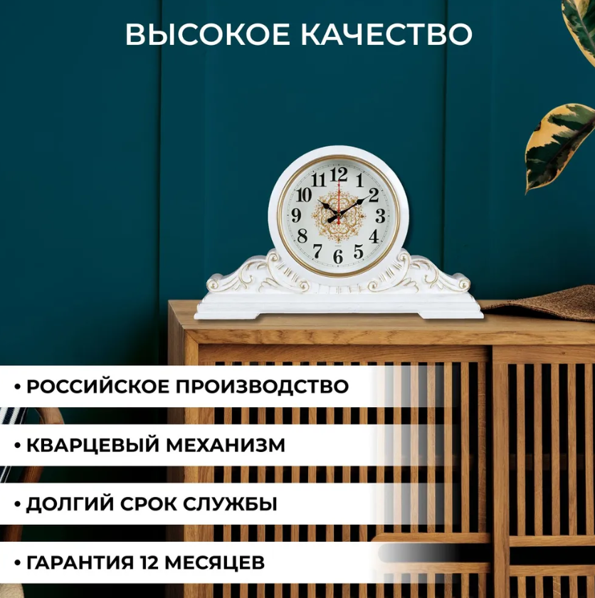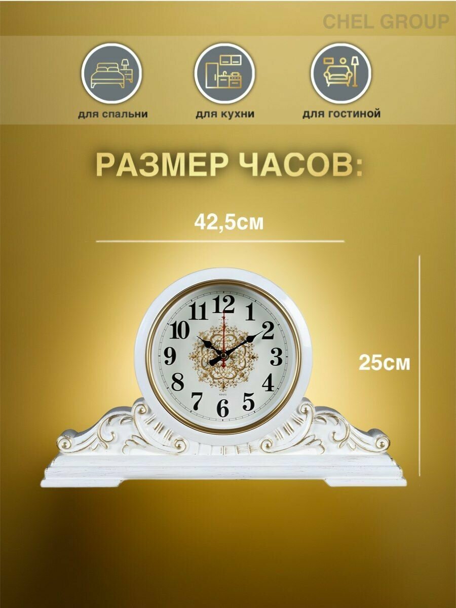 Часы настольные Рубин "Вита", 43х25 см, корпус белый, с золотом (4225-001)