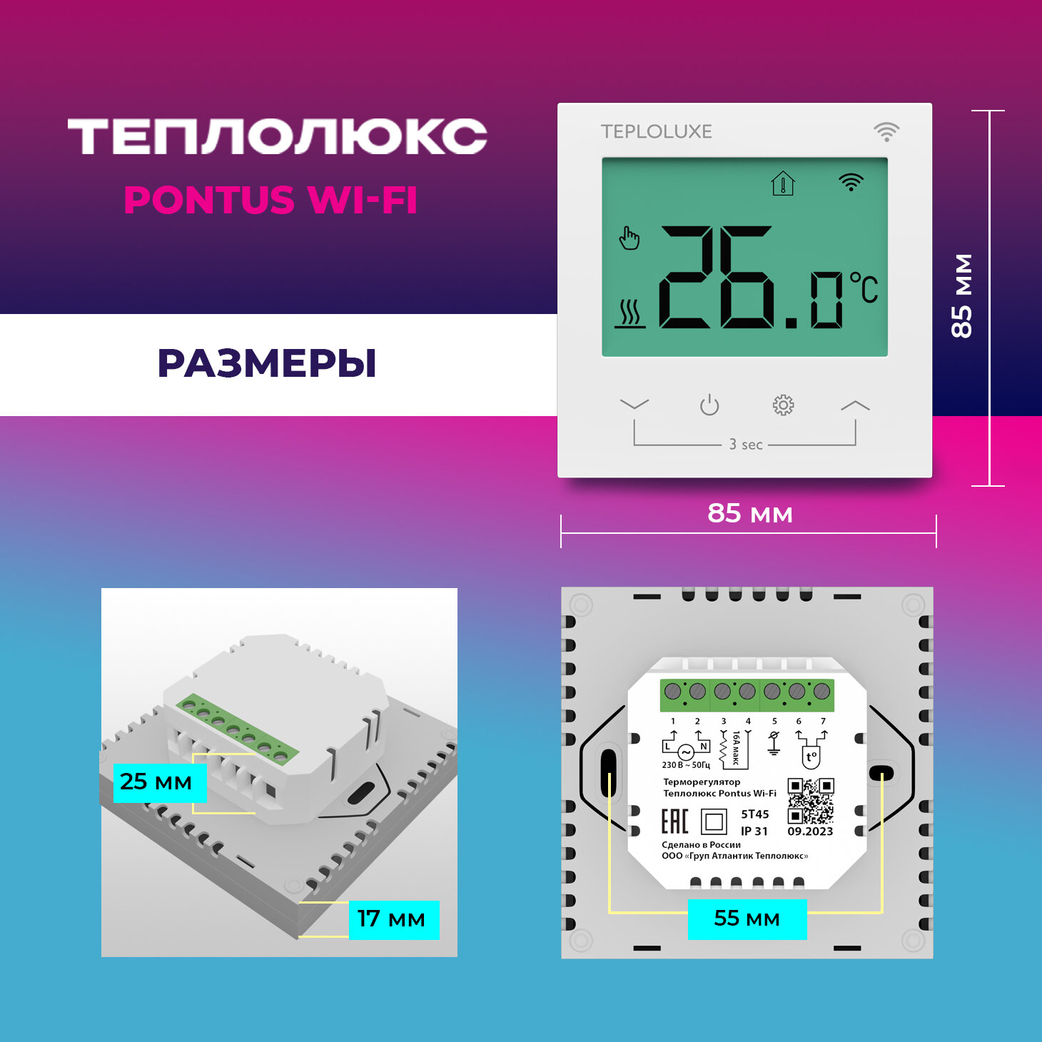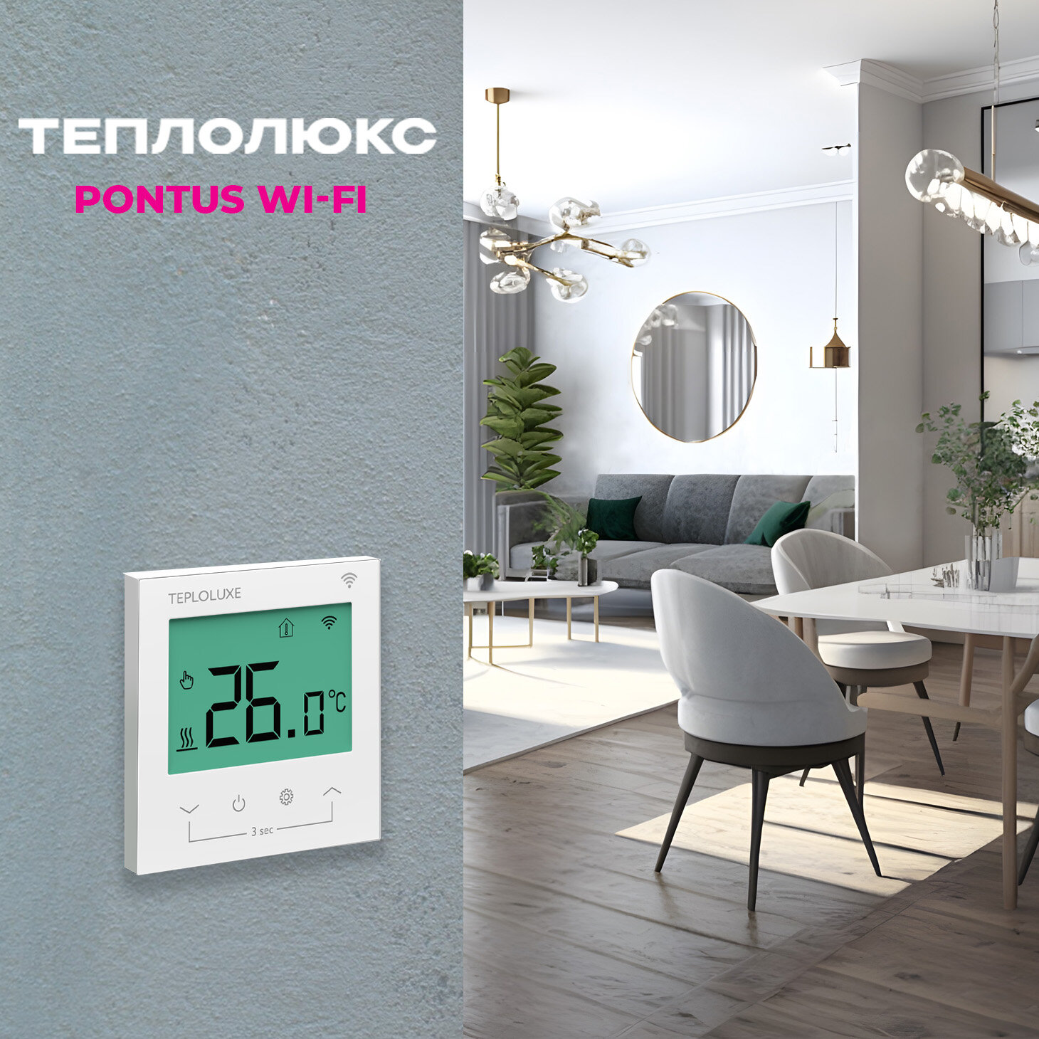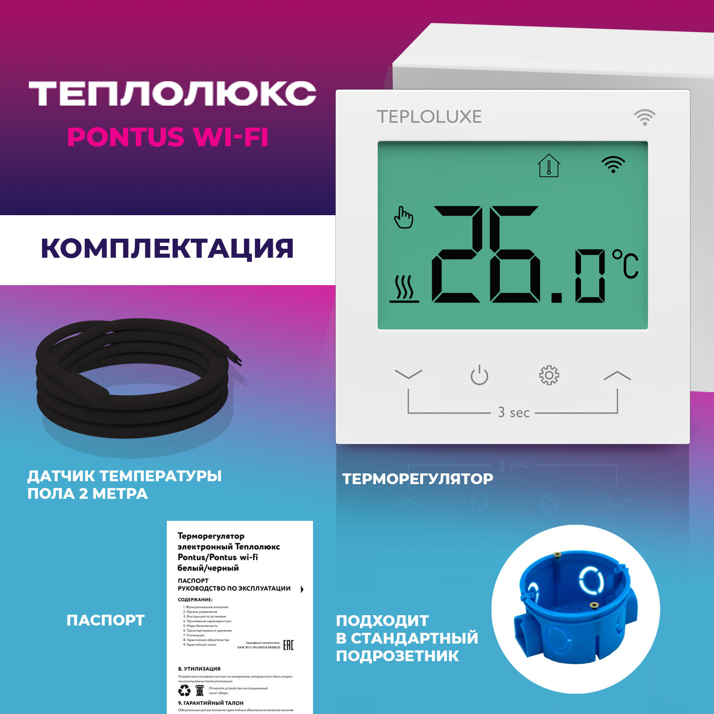 Терморегулятор Pontus Теплолюкс WI FI электронный с сенсорным управлением , белый