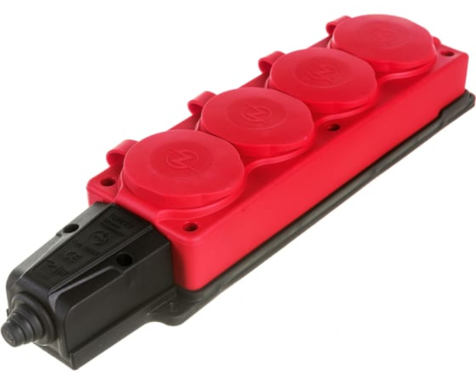Купить Штепсельная 4х розетка с крышкой ( каучук) красная