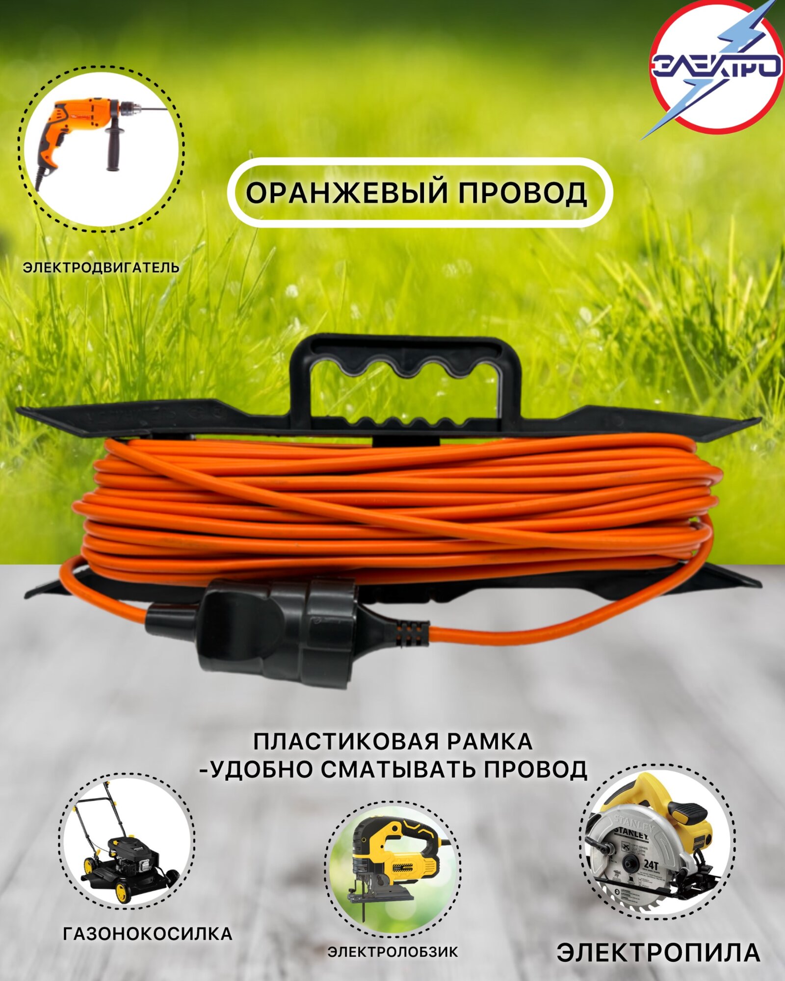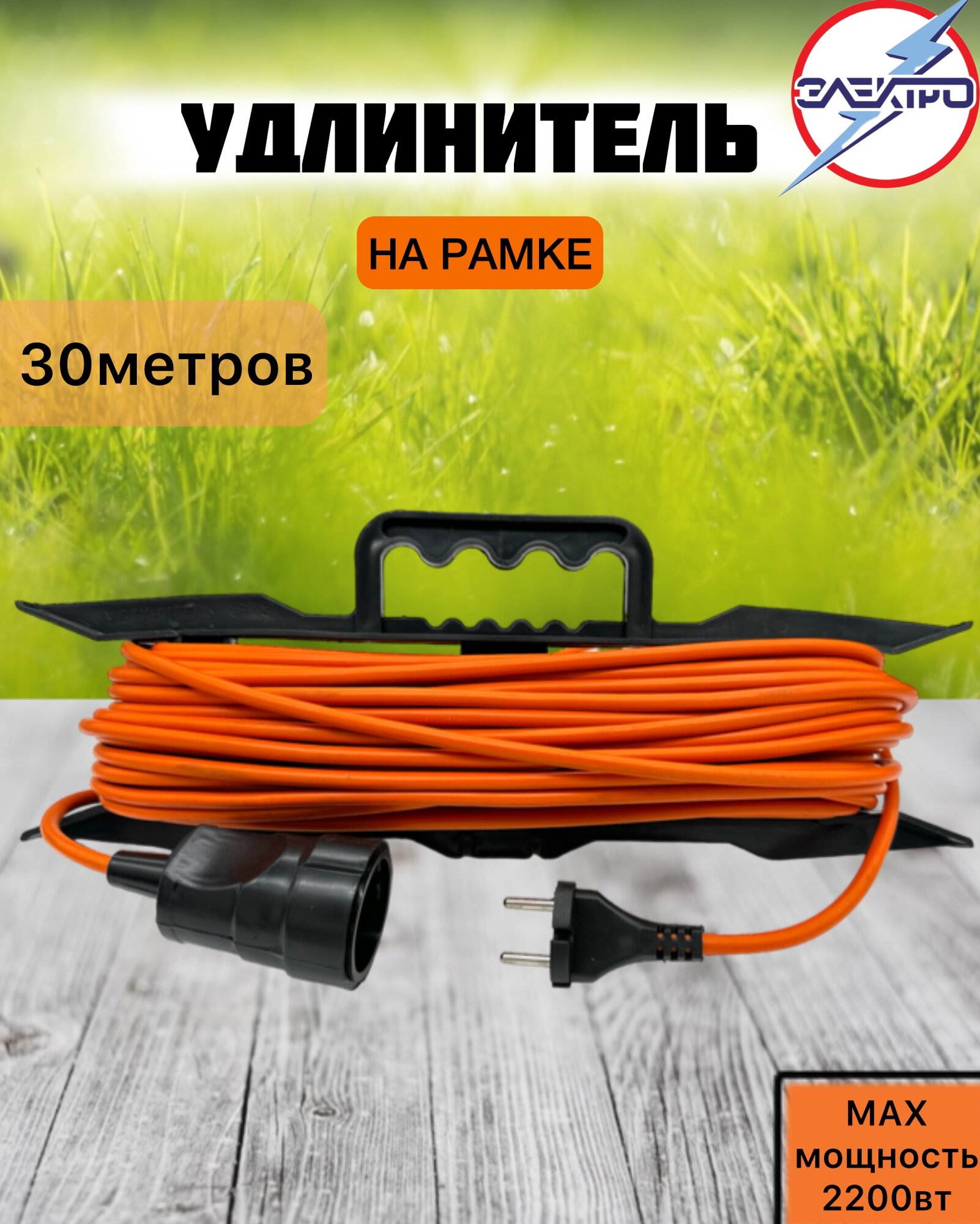 Удлинитель-шнур на рамке длина 30 метров 2200вт оранжевый цвет интересное: