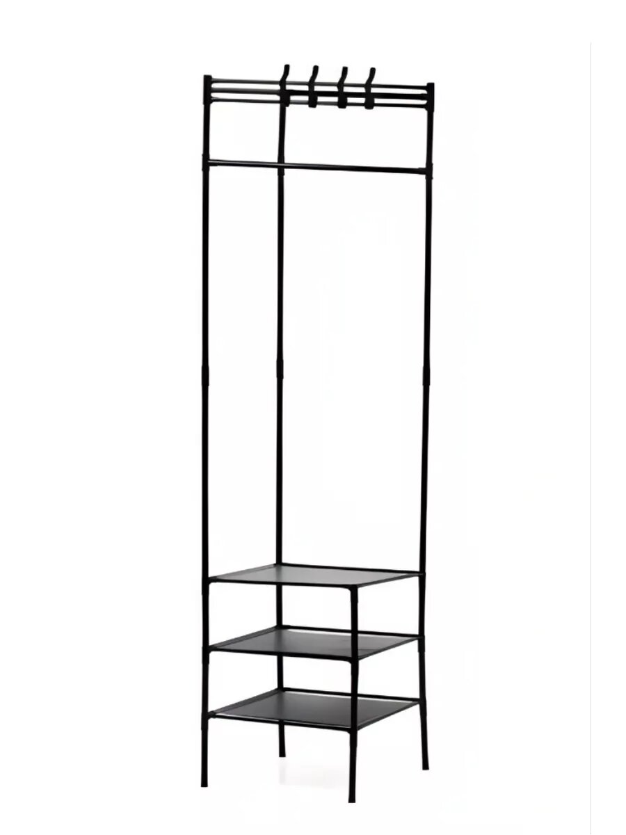 Вешалка напольная с двумя рейлами и полками , на колесах черная