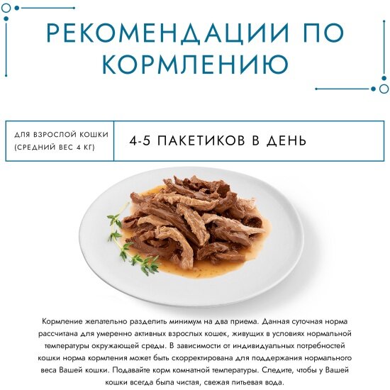 | Дозировка | 3–4 пакетика в день для взрослой кошки (средний вес 4 кг), в два приема |