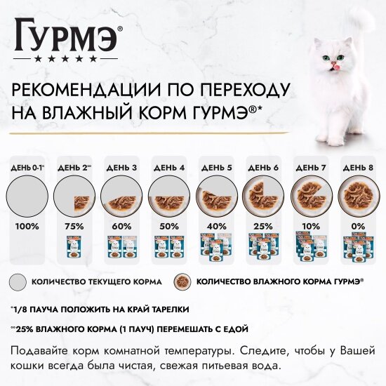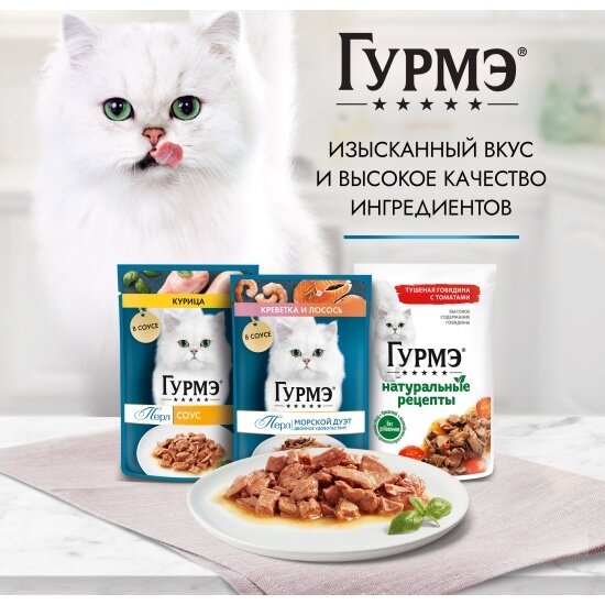 Гурмэ натуральные рецепты для взрослых кошек с лососем-гриль и зеленой фасолью пауч 75 гр NEW 75 гр х 10 шт