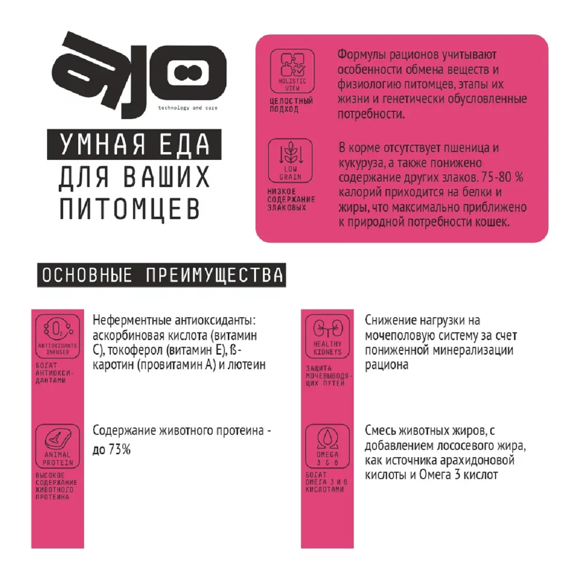 Корм для кошек сухой AJO / Айо Cat Sterile для взрослых стерилизованных животных, гранулы 400г / кошачья еда для ежедневного кормления