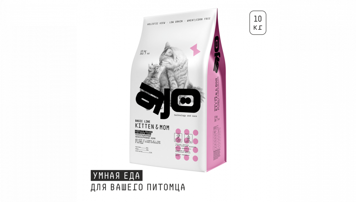 Сухой корм AJO Cat Kitten & Mom для котят, беременных и кормящих кошек, с индейкой, 10 кг