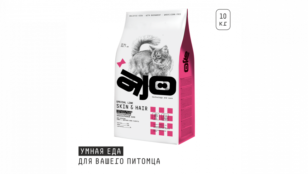 AJO Cat Skin & Hair Сухой полнорационный корм для кошек здоровая кожа и шерсть 10 кг