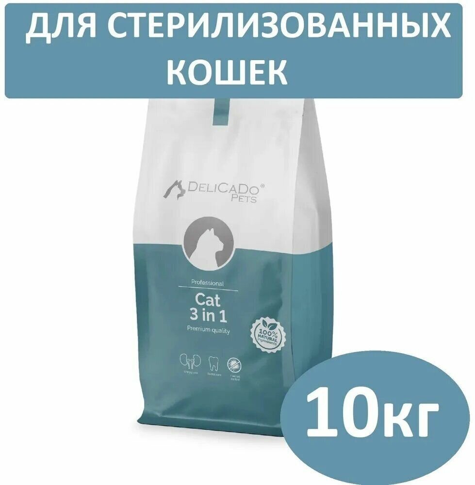 Сухой корм для стерилизованных кошек DELICADO CAT 3 in 1 с индейкой 10 кг