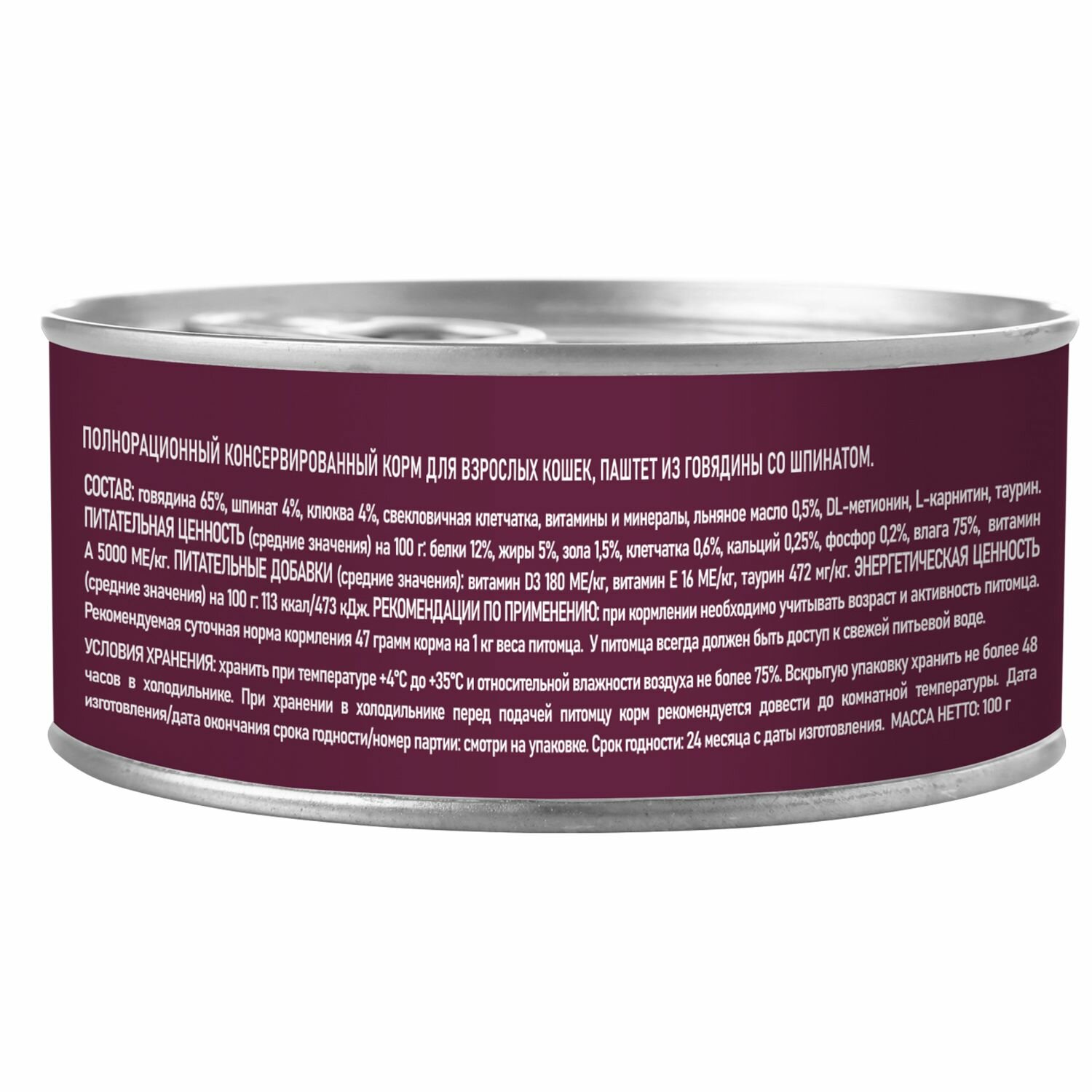 Влажный корм AWARD для взрослых кошек паштет из говядины со шпинатом 100г