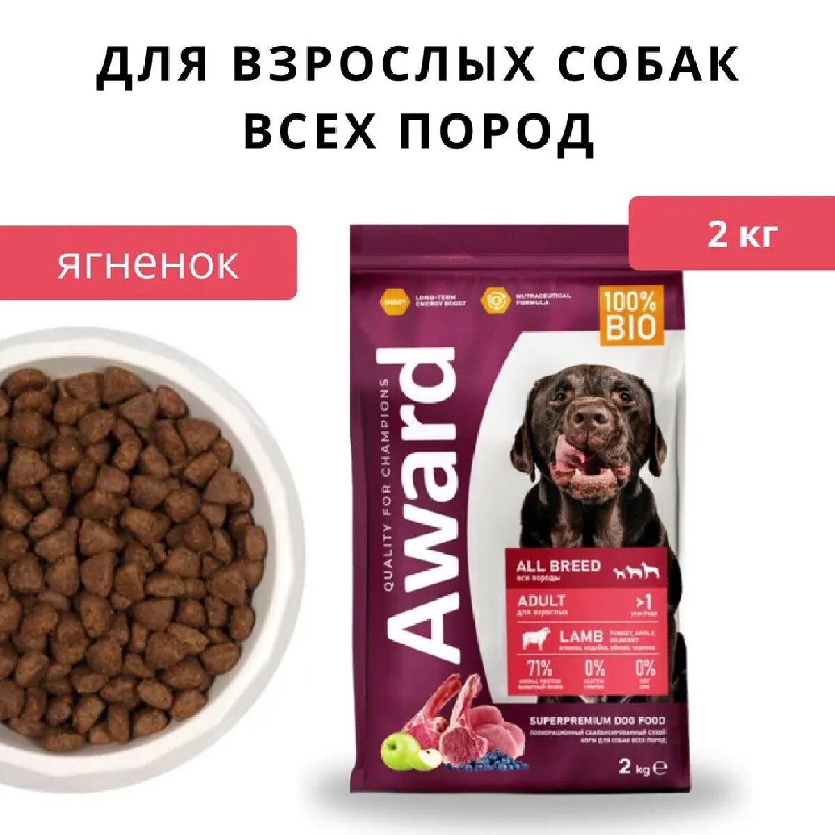 AWARD Сухой корм AWARD для взрослых собак всех пород с ягненком и индейкой с добавлением яблока и черники 2кг 7173501 2,000 кг 66733 (2 шт)