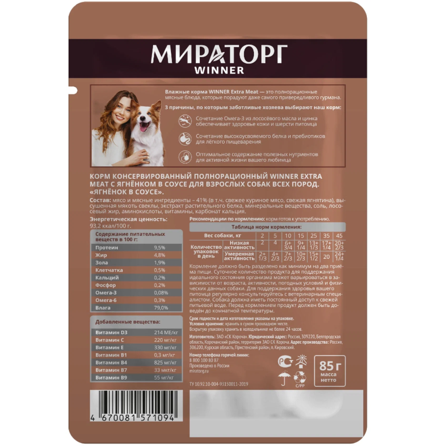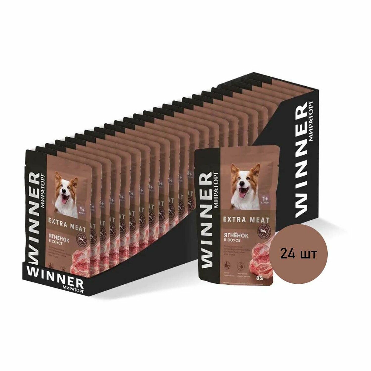 WINNER EXTRA MEAT для взрослых собак всех пород с ягненком в соусе (85 гр х 24 шт) интересное: