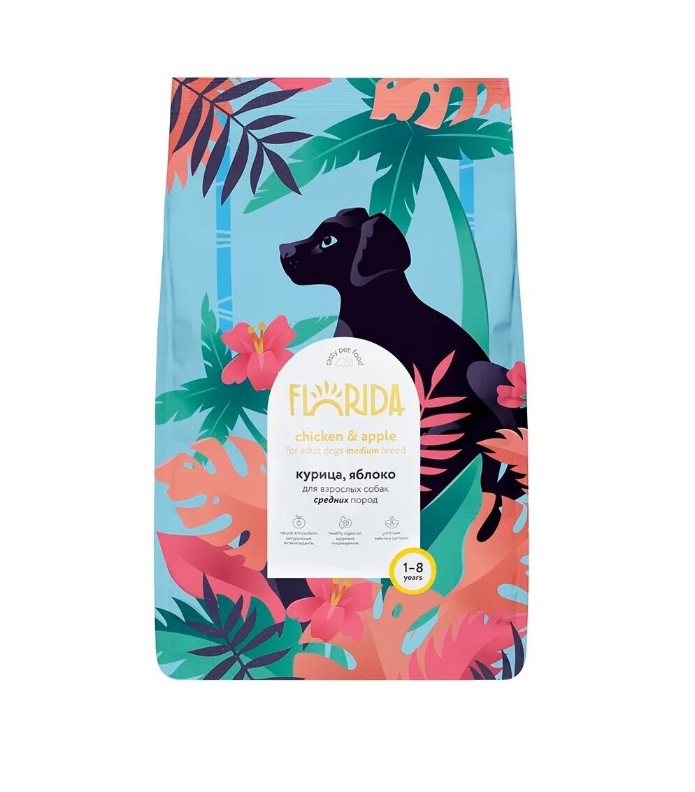 Florida - Сухой корм для взрослых собак средних пород с курицей и яблоком (1кг)