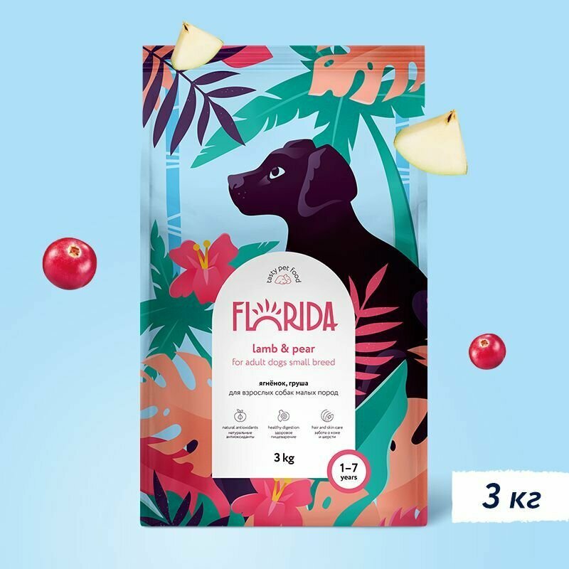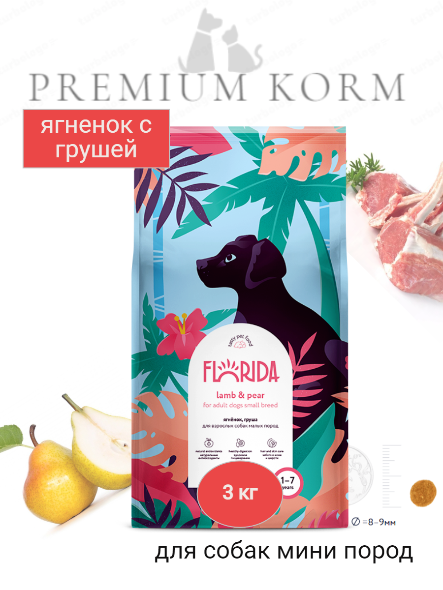 Сухой корм для собак малых пород Florida ягненок, груша, 3 кг