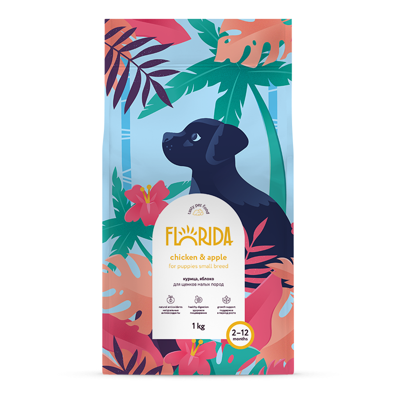 Корм сухой Florida курица и яблоко для щенков малых пород (3 кг)
