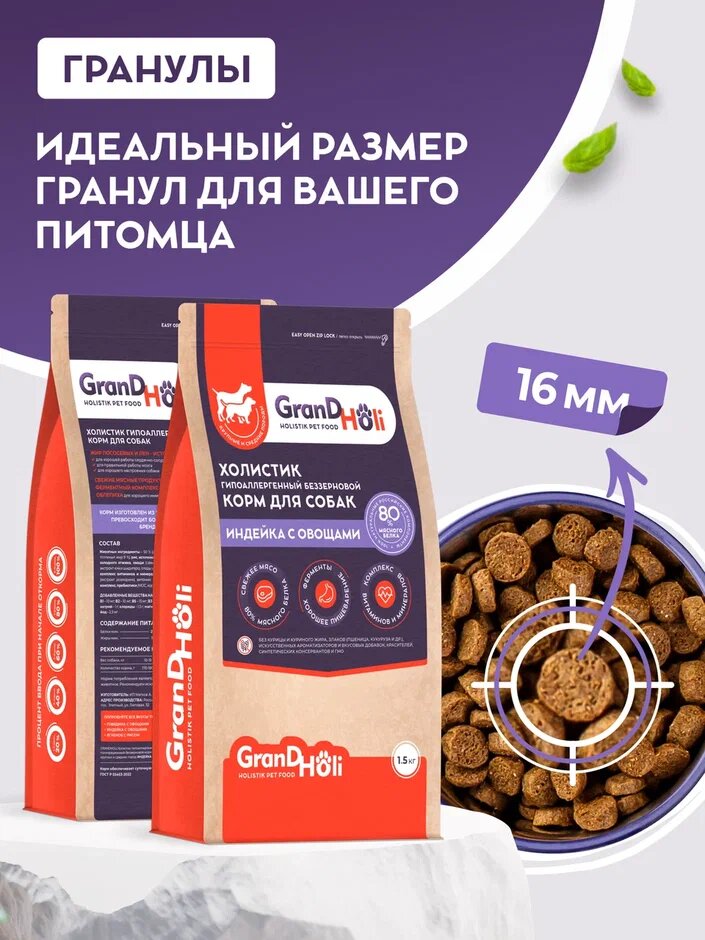 Ниже Вы можете прочитать отзывы на Сухой корм для собак крупных и средних пород GRANDHOLI холистик "Индейка с овощами" 1,5 кг, ознакомится с подробными характеристиками, посмотреть интересные обзоры и фотографии на Сухой корм для собак крупных и средних пород GRANDHOLI холистик "Индейка с овощами" 1,5 кг.