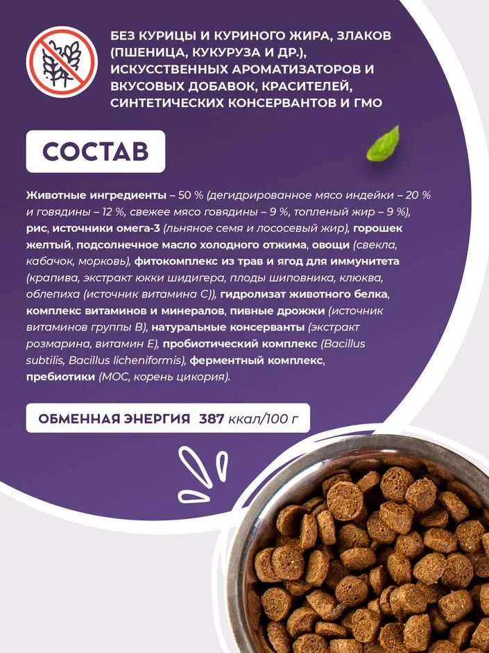 СохранитьСухой корм для собак крупных и средних пород GRANDHOLI холистик "Индейка с овощами" 1,5 кг интересное: