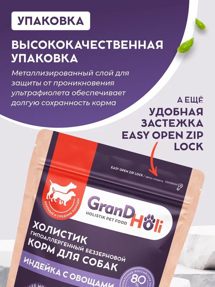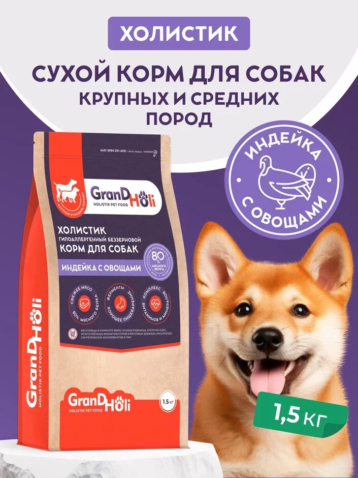 Купить Сухой корм для собак крупных и средних пород GRANDHOLI холистик "Индейка с овощами" 1,5 кг