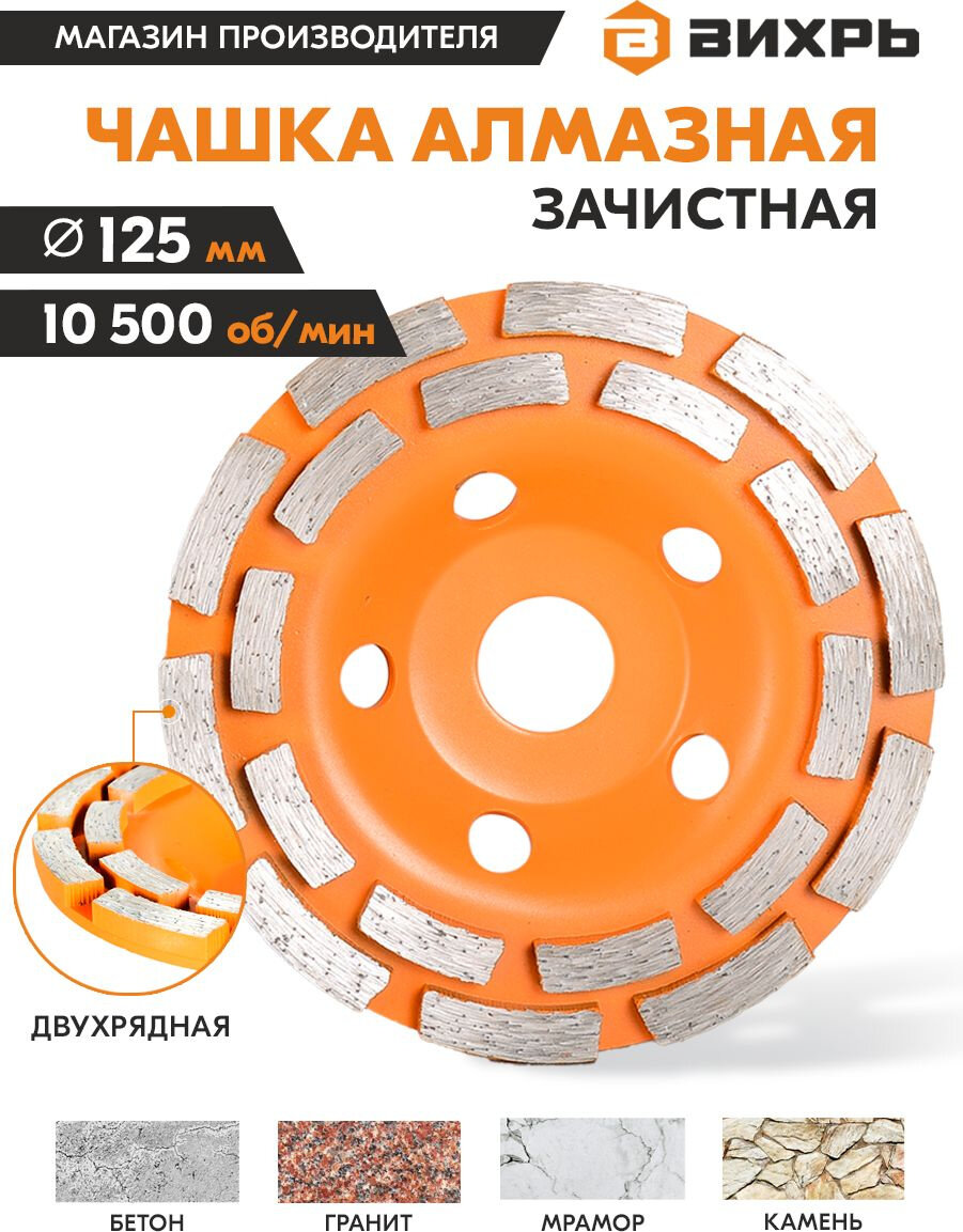 Чашка алмазная зачистная Вихрь 125 мм, двухрядная интересное: