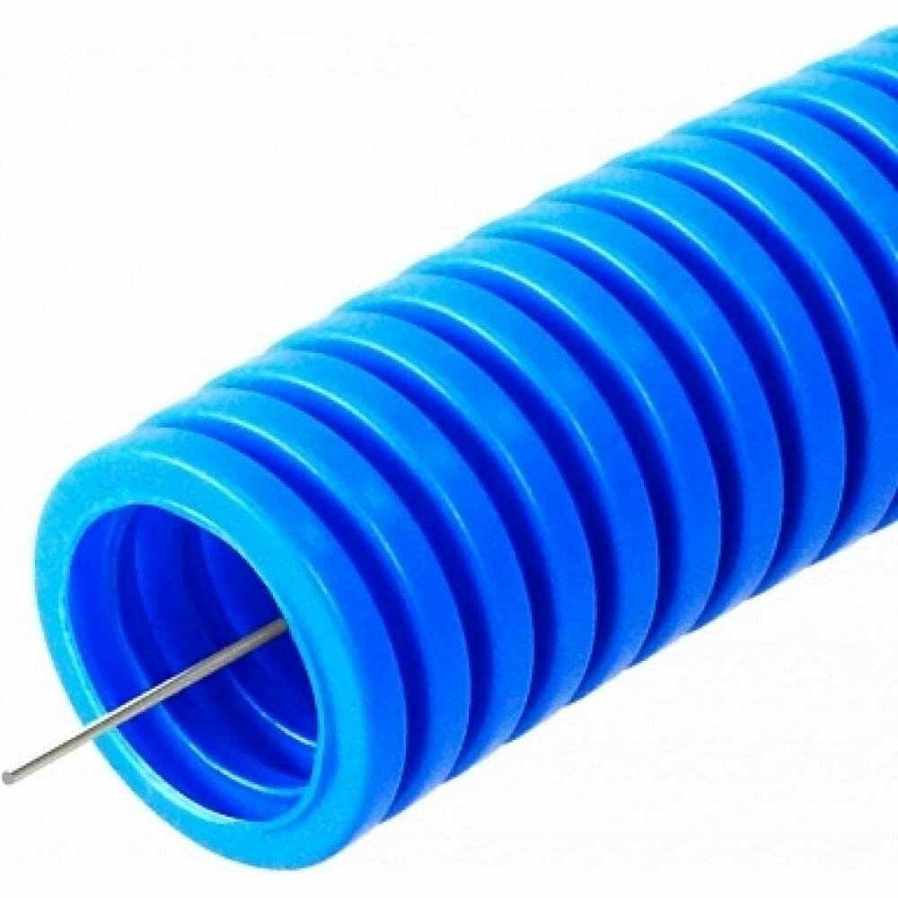 Труба гофрированная ПП лёгкая 350 Н негорючая (НГ) синяя с/з d25 мм, 50м
