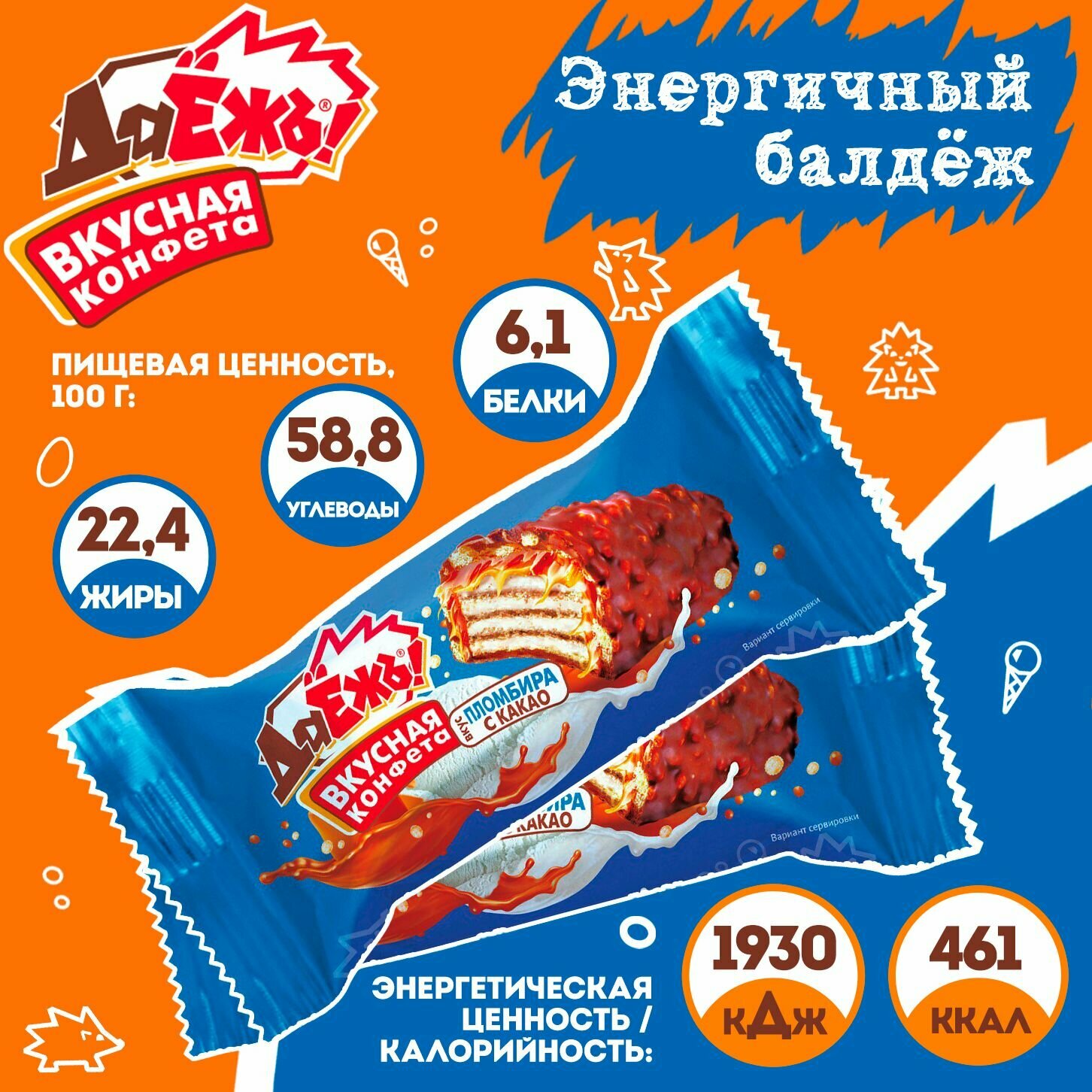 Конфеты вафельные ДаЁжъ с мягкой карамелью и вкусом пломбира, 1.5 кг интересное: