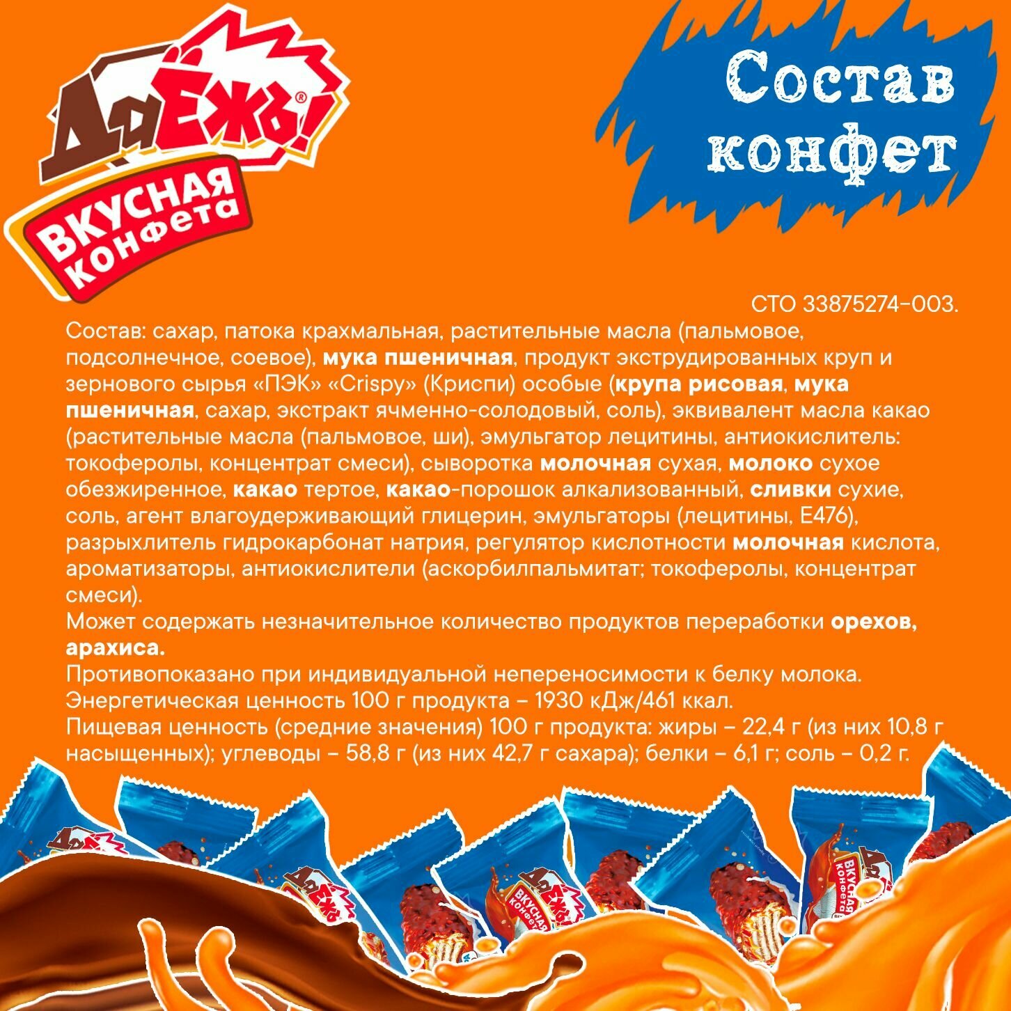 Конфеты вафельные Даёжъ с карамелью, арахисом и криспи, в шоколаде, коробка 1.5 кг