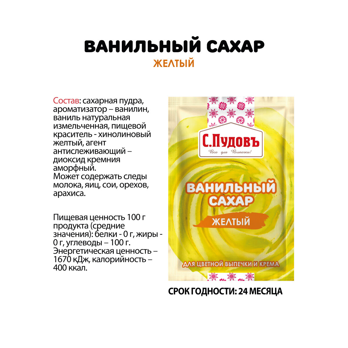 Ванильный сахар желтый, С.Пудовъ, 8 г интересное: