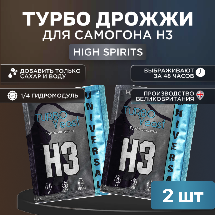 "High Spirits" Турбо дрожжи для самогона H3 Universal, 3 штуки в комплекте