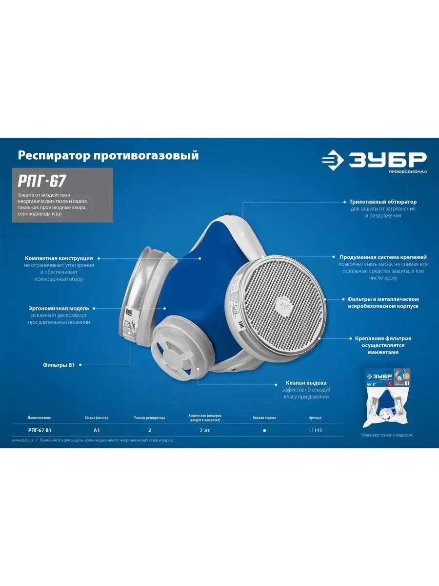 Респиратор противогазовый с фильтрами Зубр РПГ-67 В1 В1 11145