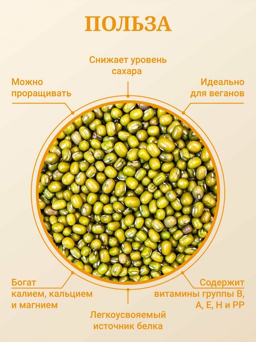 Маш зеленый, бобы мунг, крупа, цельная, Узбекистан, 3кг