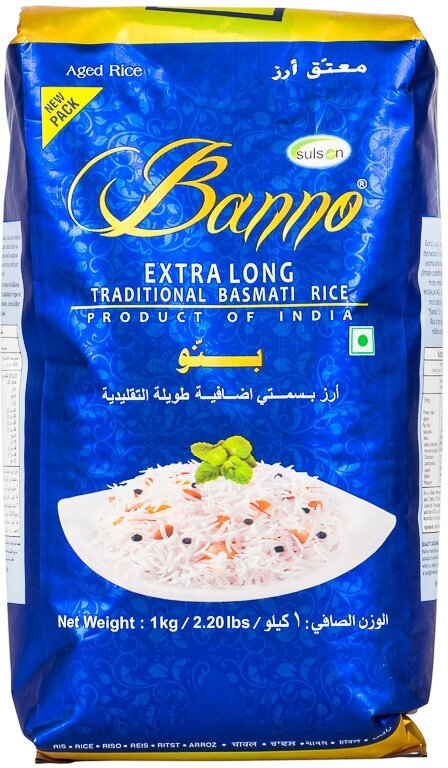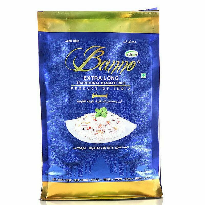 Banno EXTRA LONG Traditional Basmati Rice (Банно экстра лонг традиционный длиннозерный рис басмати, шлифованный), 1 кг.
