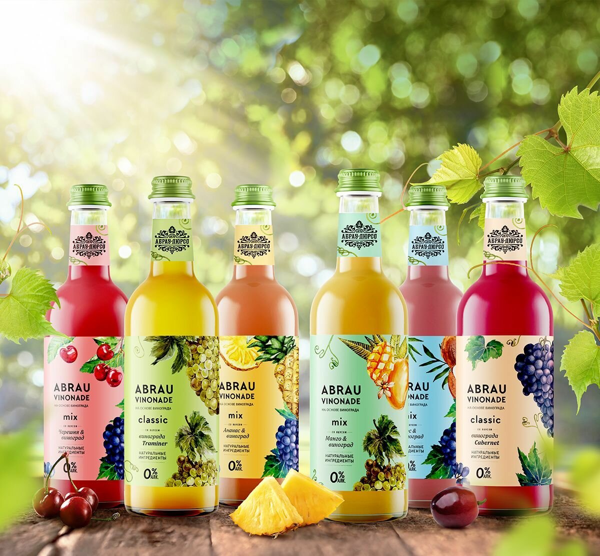 Безалкогольный напиток лимонад Абрау Винонад Манго-Виноград 0,375 л, 12 бут