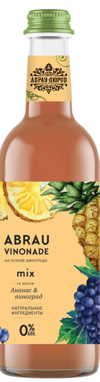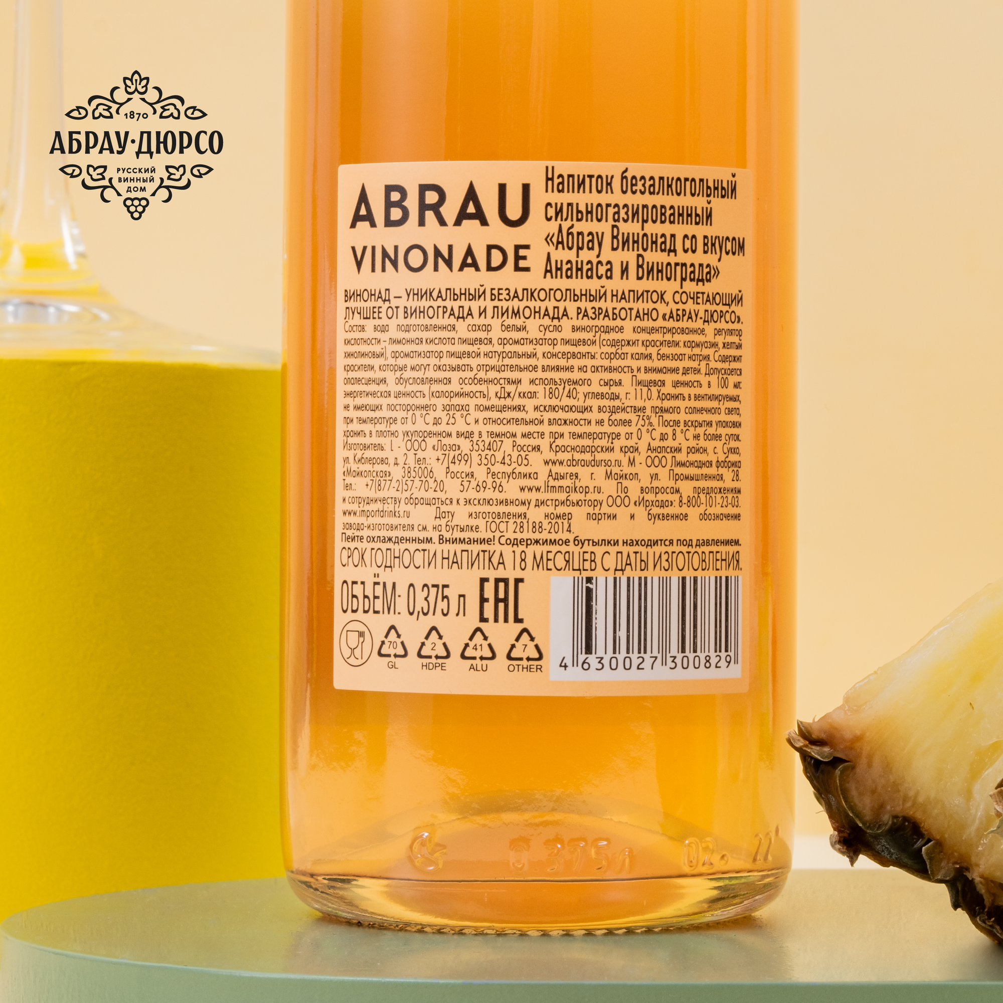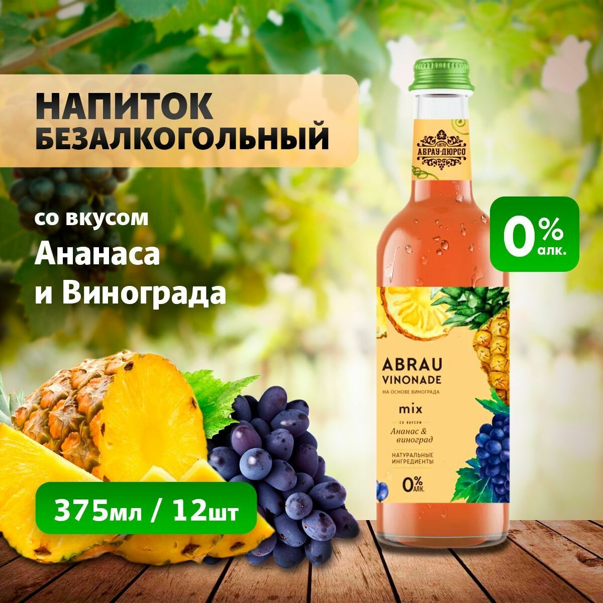 Безалкогольный напиток лимонад Абрау Винонад Ананас-Виноград 0,375 л, 12 бут