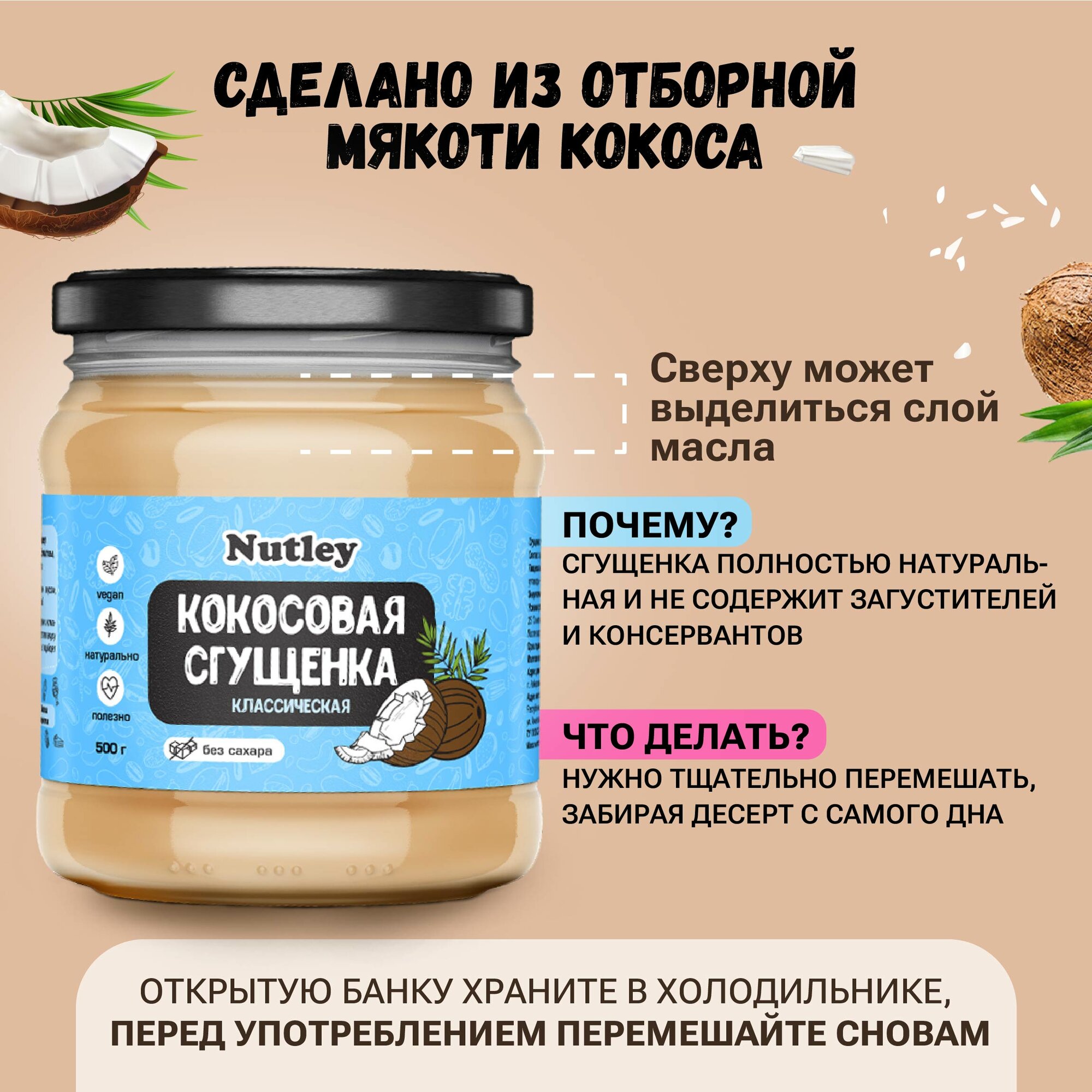 Кокосовая сгущенка без сахара Nutley, 500 грамм интересное: