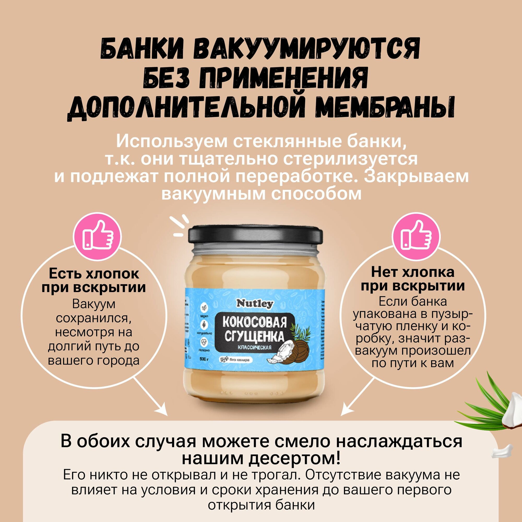 Кокосовая сгущенка "Nutley" без сахара, стеклянная банка, 1 кг