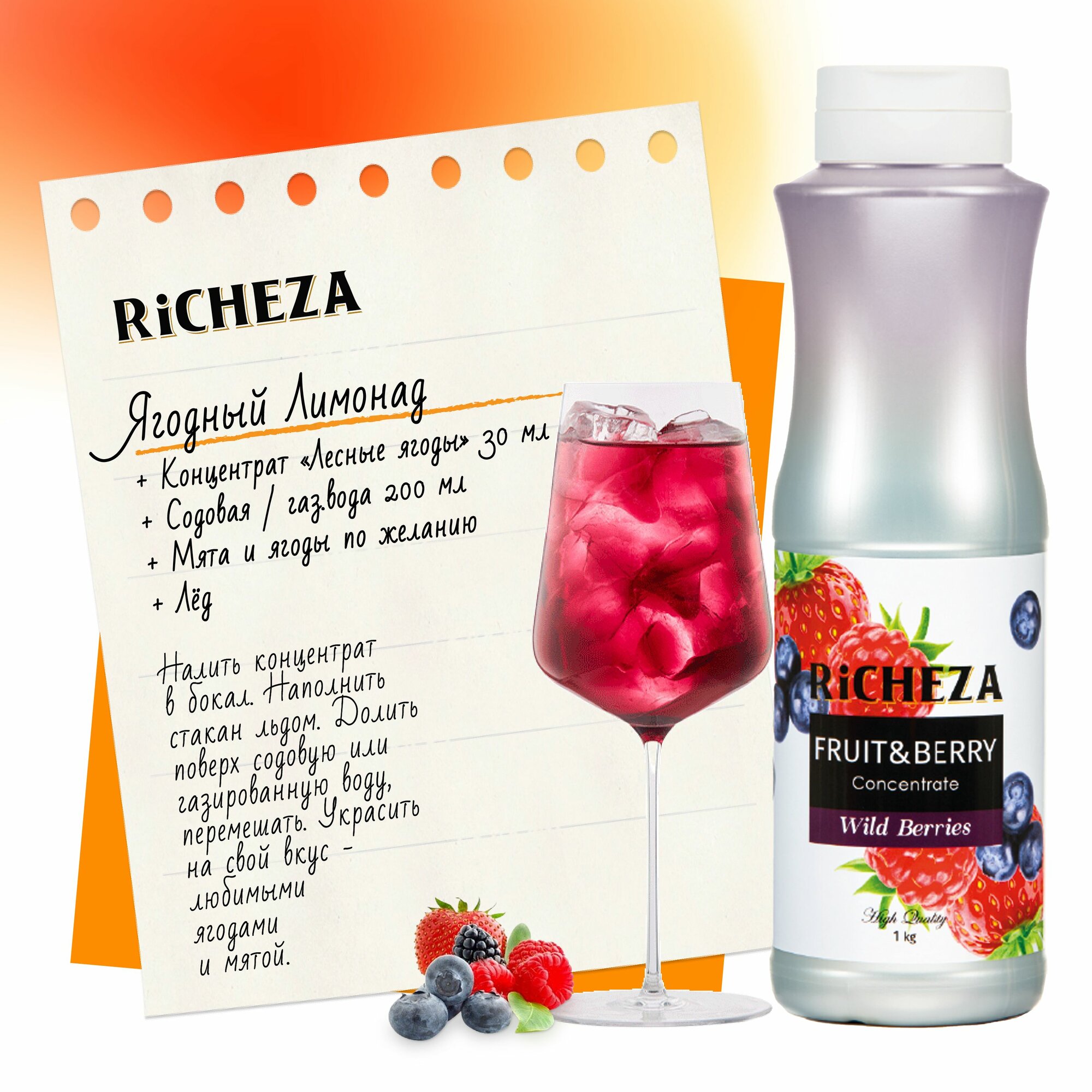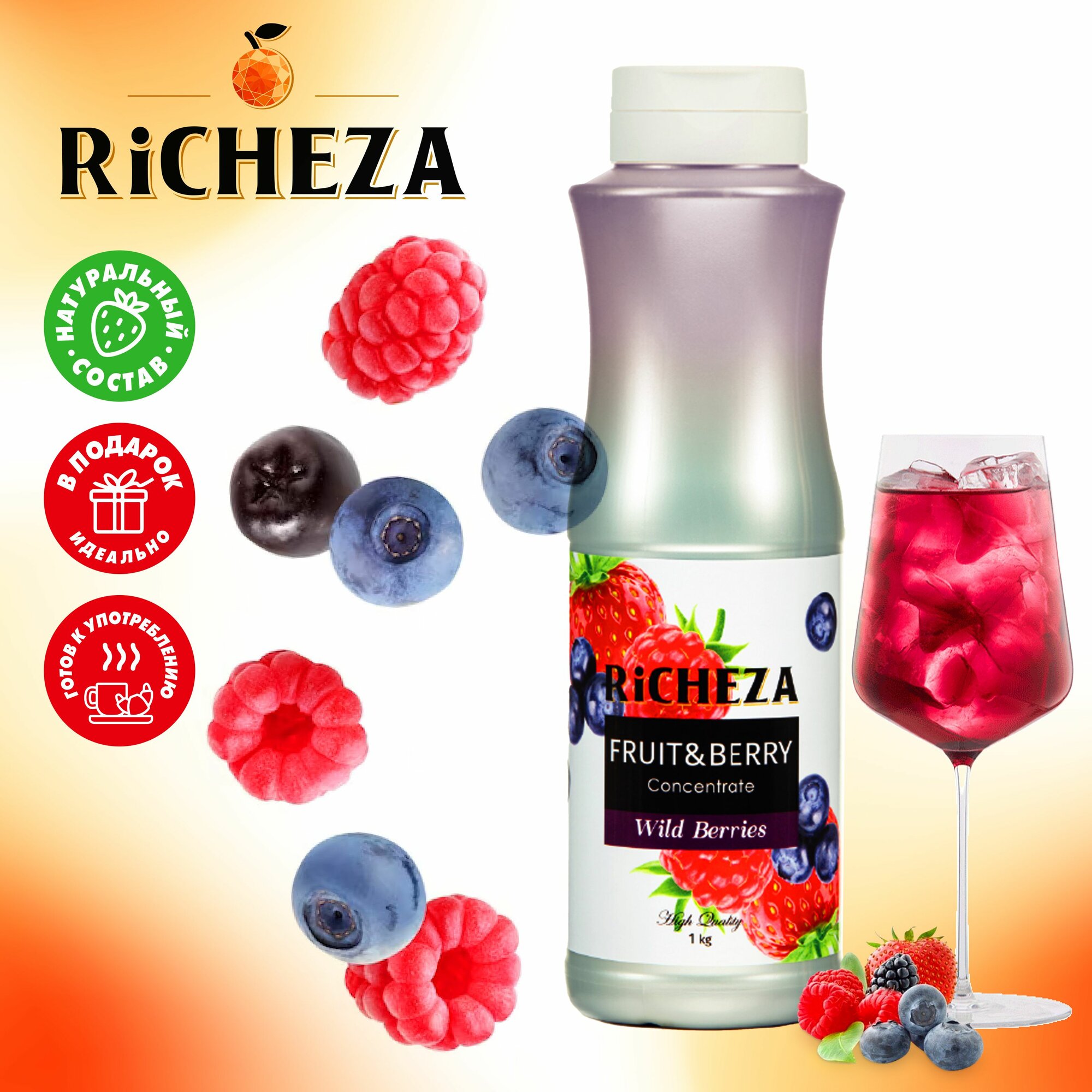 Купить Концентрат Основа для приготовления напитков Richeza Ричеза Лесные Ягоды, натуральный концентрат для чая, коктейля, смузи, лимонада, 1 кг.