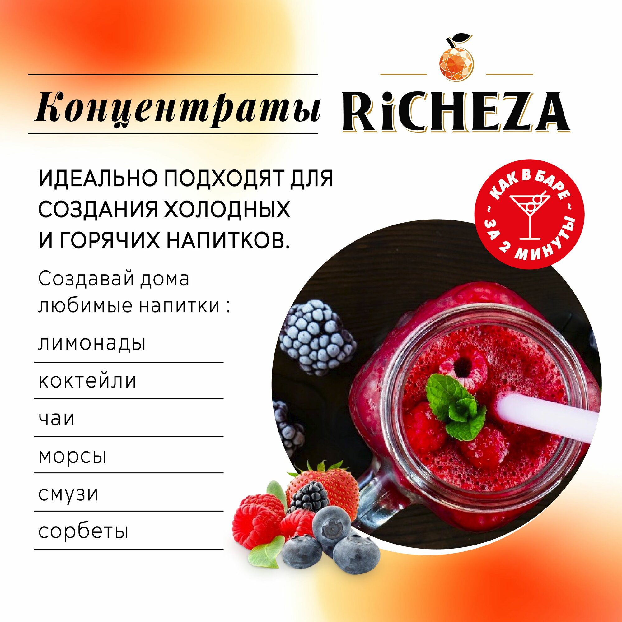 Концентрат Основа для приготовления напитков Richeza Ричеза Клюква-Апельсин, натуральный концентрат для чая, коктейля, смузи, лимонада, 1 кг.
