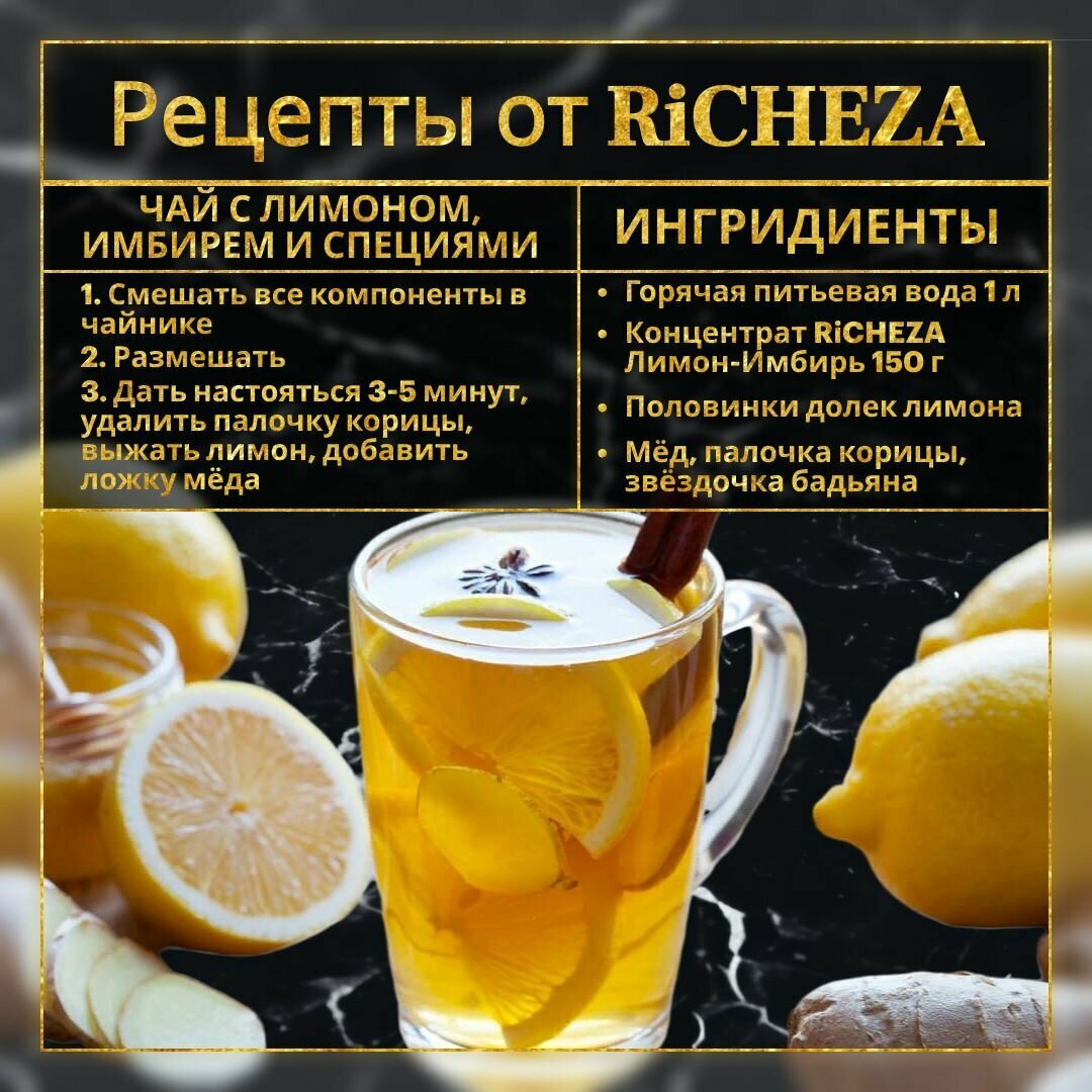 Купить Концентрат Основа для приготовления напитков Richeza Ричеза Лимон-Имбирь, натуральный концентрат для чая, коктейля, смузи, лимонада, 1 кг.