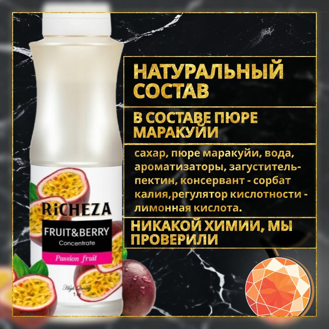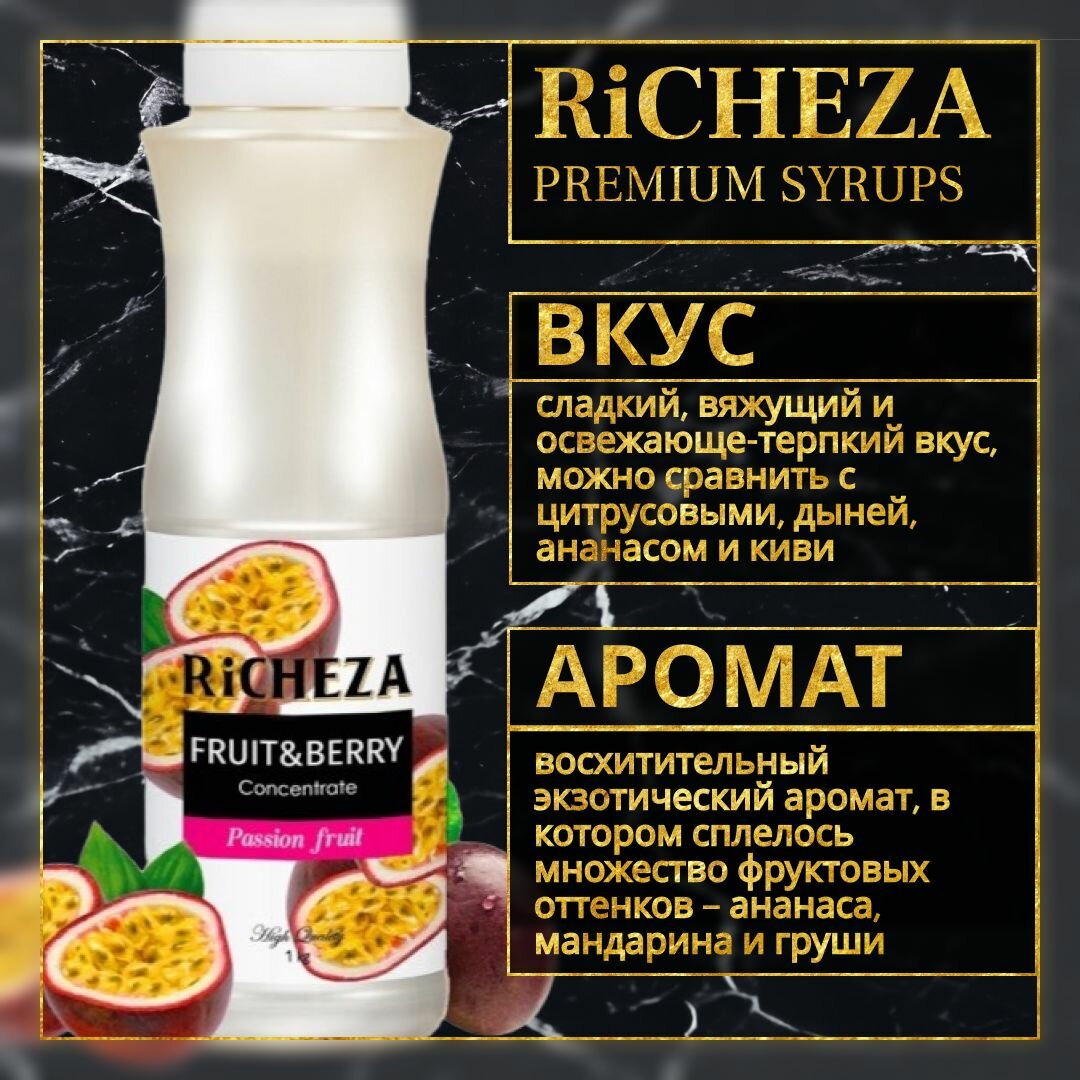 Купить Концентрат Основа для приготовления напитков Richeza Ричеза Маракуйя, натуральный концентрат для чая, коктейля, смузи, лимонада, 1 кг.
