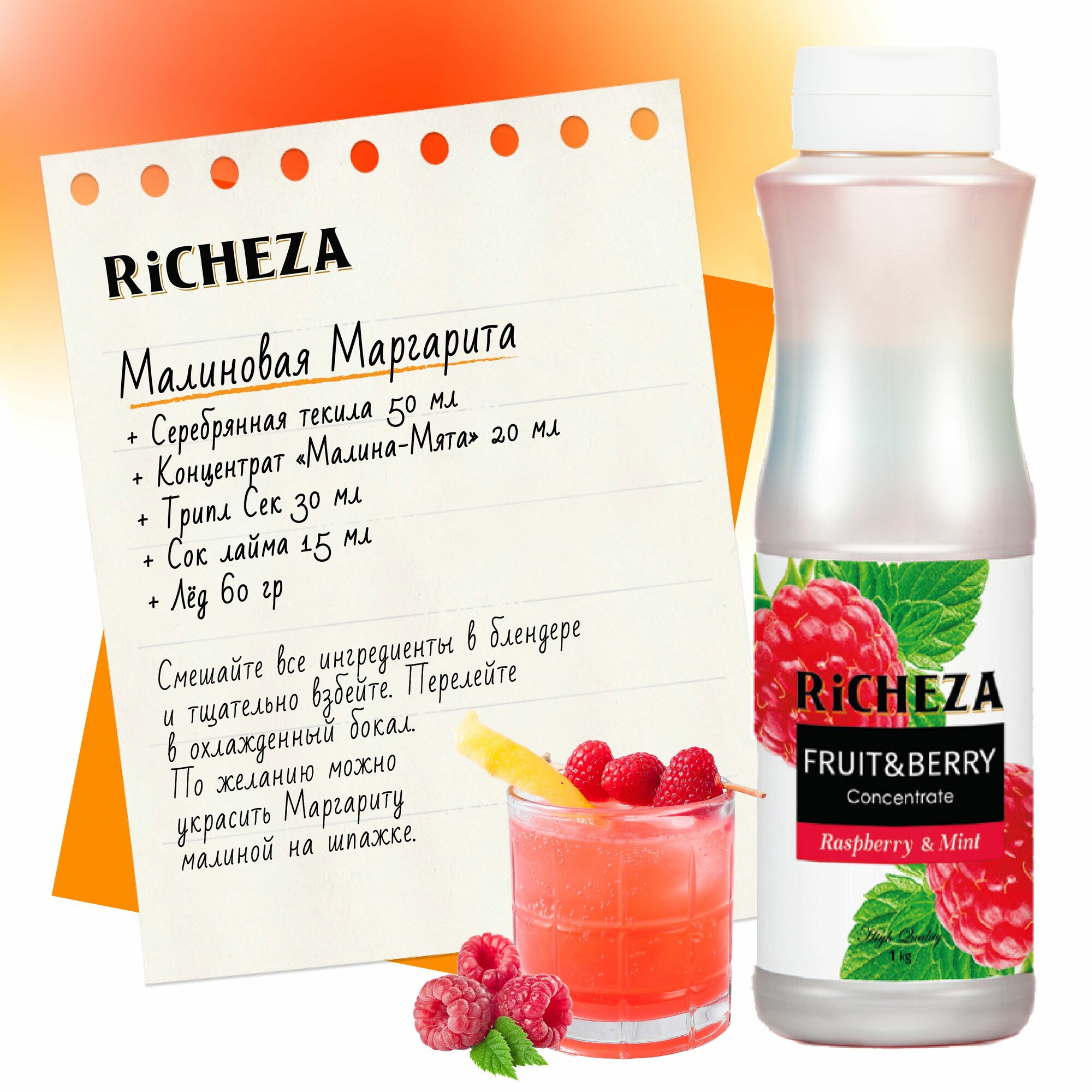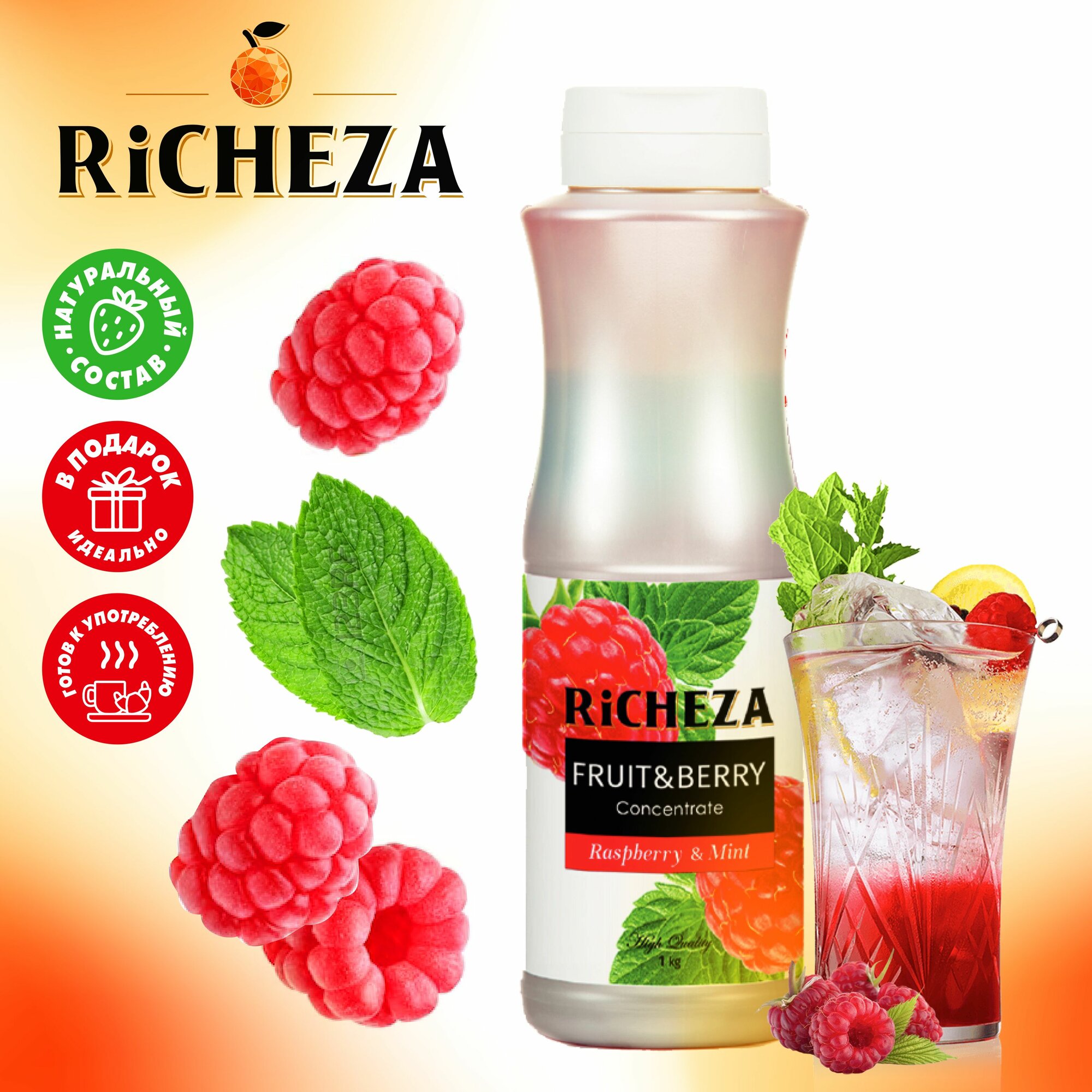 Концентрат RiCHEZA Малина-Мята бутылка пластик (1кг) шт