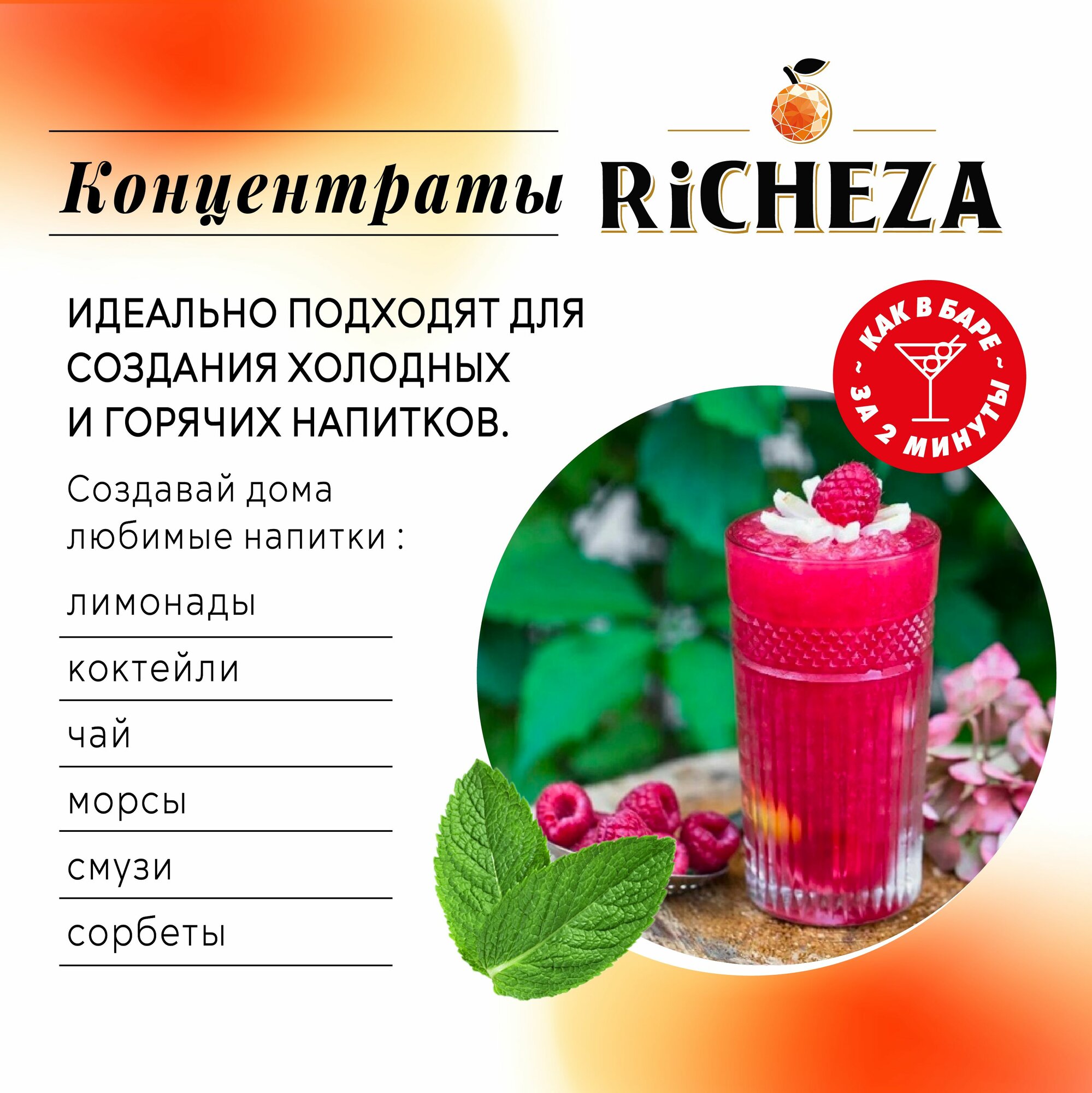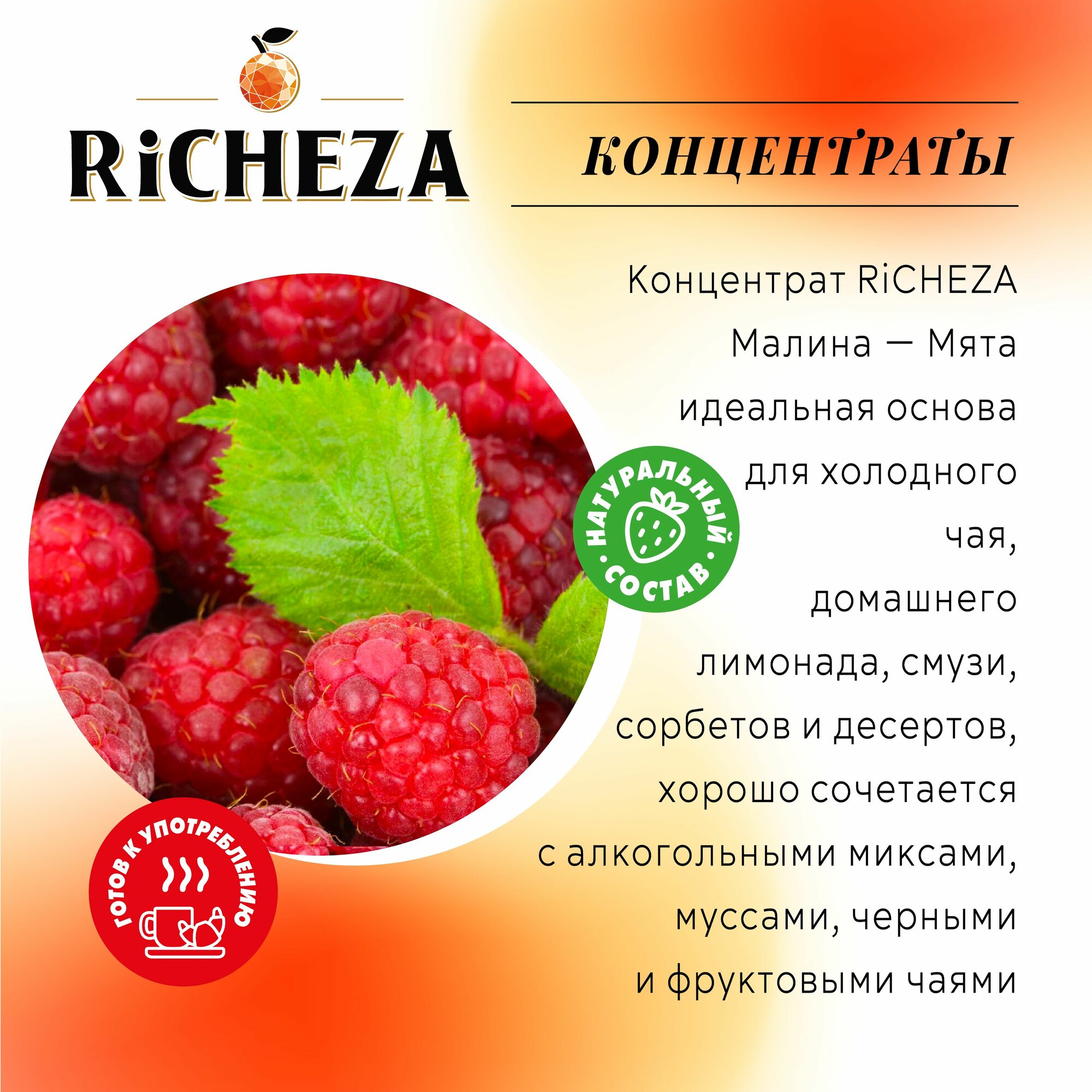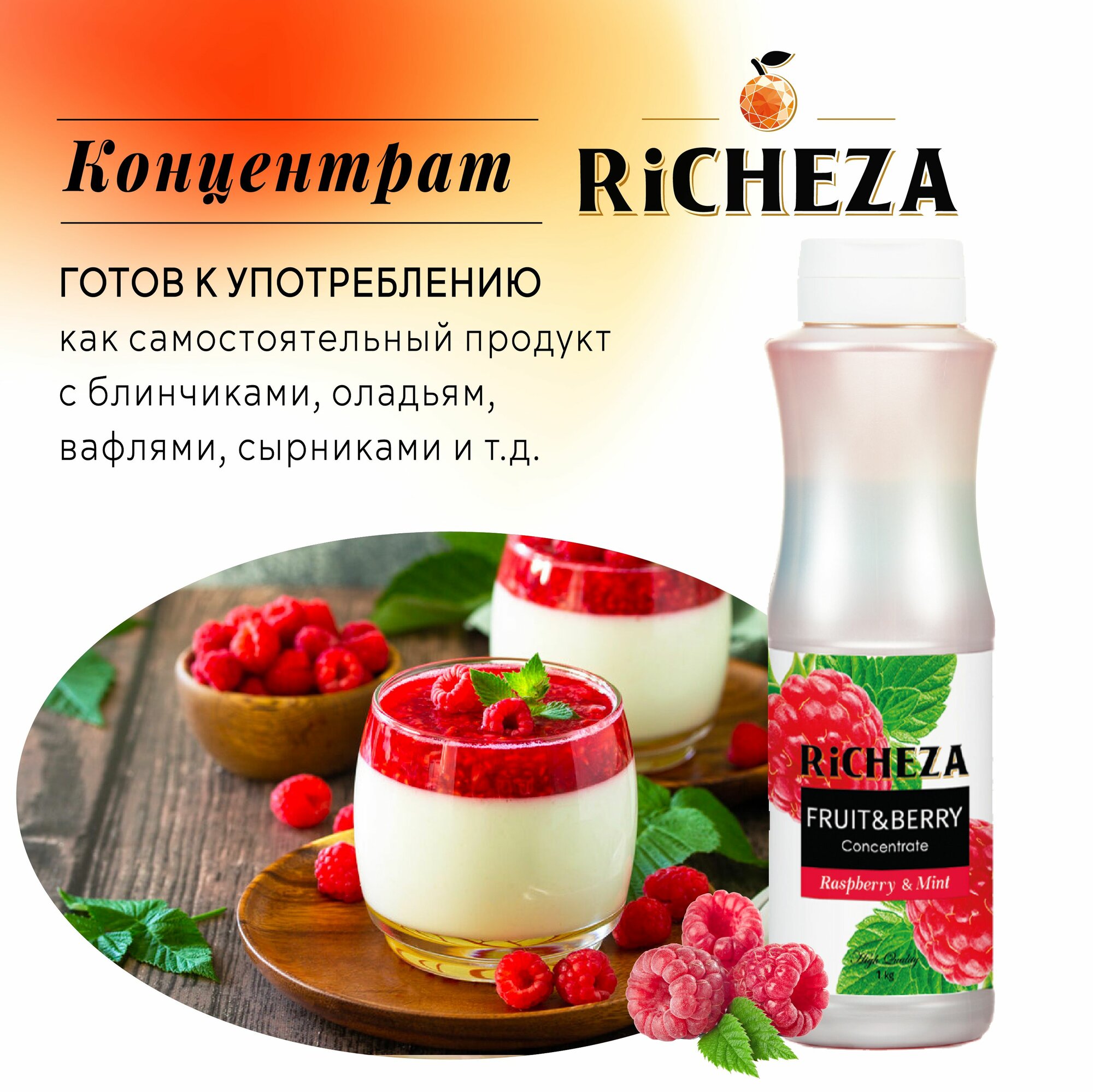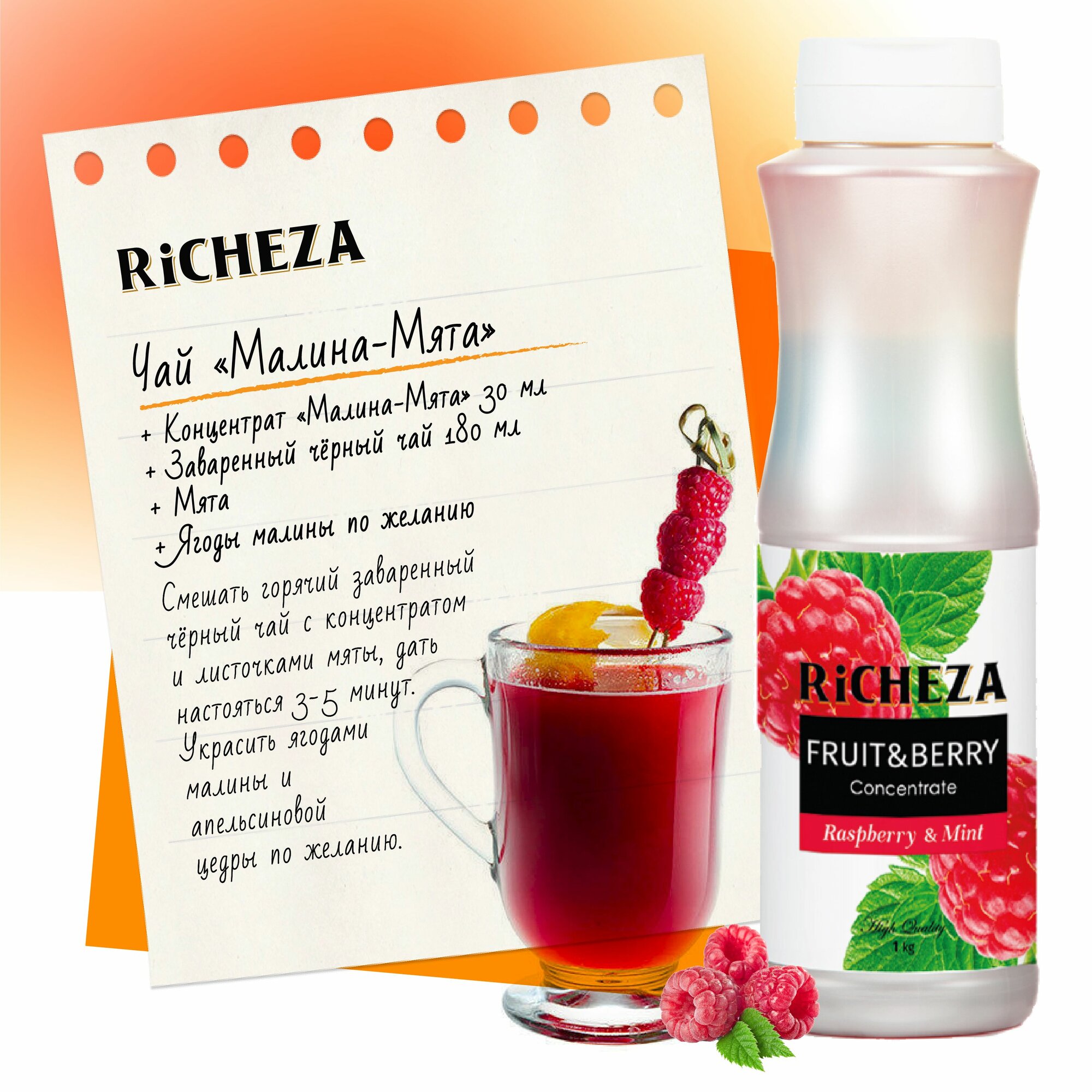 Купить Концентрат Основа для приготовления напитков Richeza Ричеза Малина-Мята, натуральный концентрат для чая, коктейля, смузи, лимонада, 1 кг.