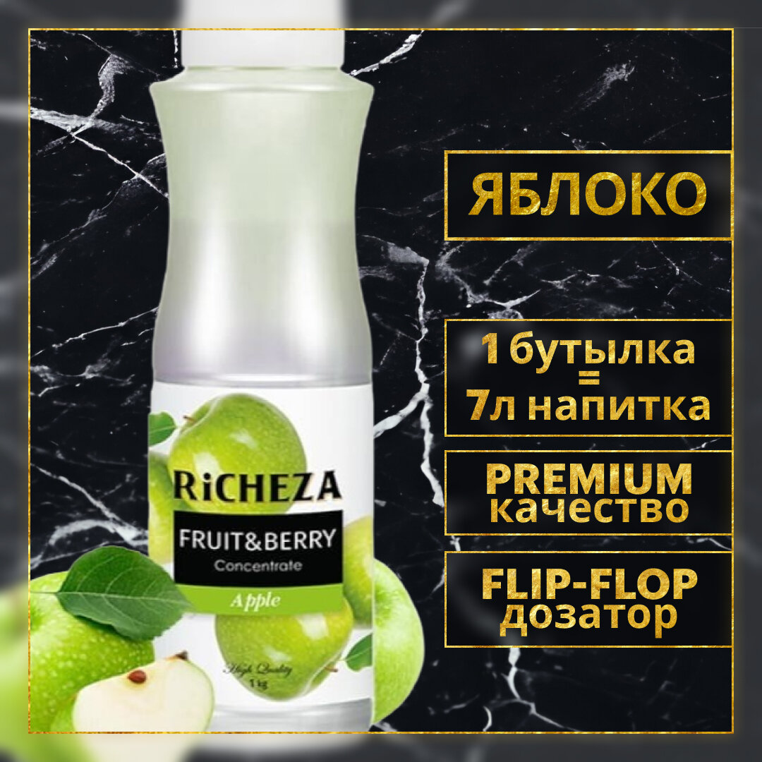Купить Концентрат Основа для приготовления напитков Richeza Ричеза Яблоко, натуральный концентрат для чая, коктейля, смузи, лимонада, 1 кг.