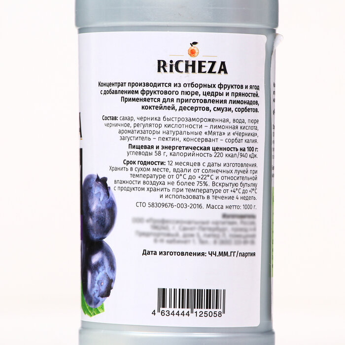 Купить RICHEZA Концентрат RiCHEZA «Черника - Мята», 1000 г