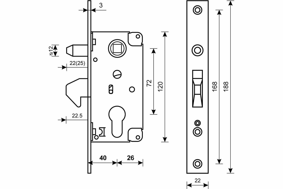 Булат ЗВ4-1К.40.72.22.04 хром 40мм под ц/м, м/о 72 мм Замок врезной для откатных ворот б/руч (20) zm_15895 интересное: