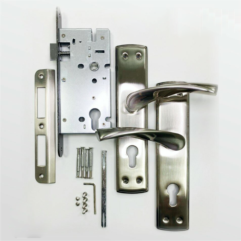 20281 Замок врезной в комплекте с ручкой на планке VЕTTORE 7255-4 SN (Сатин) для межкомнатных и входных деревянных и металлических дверей