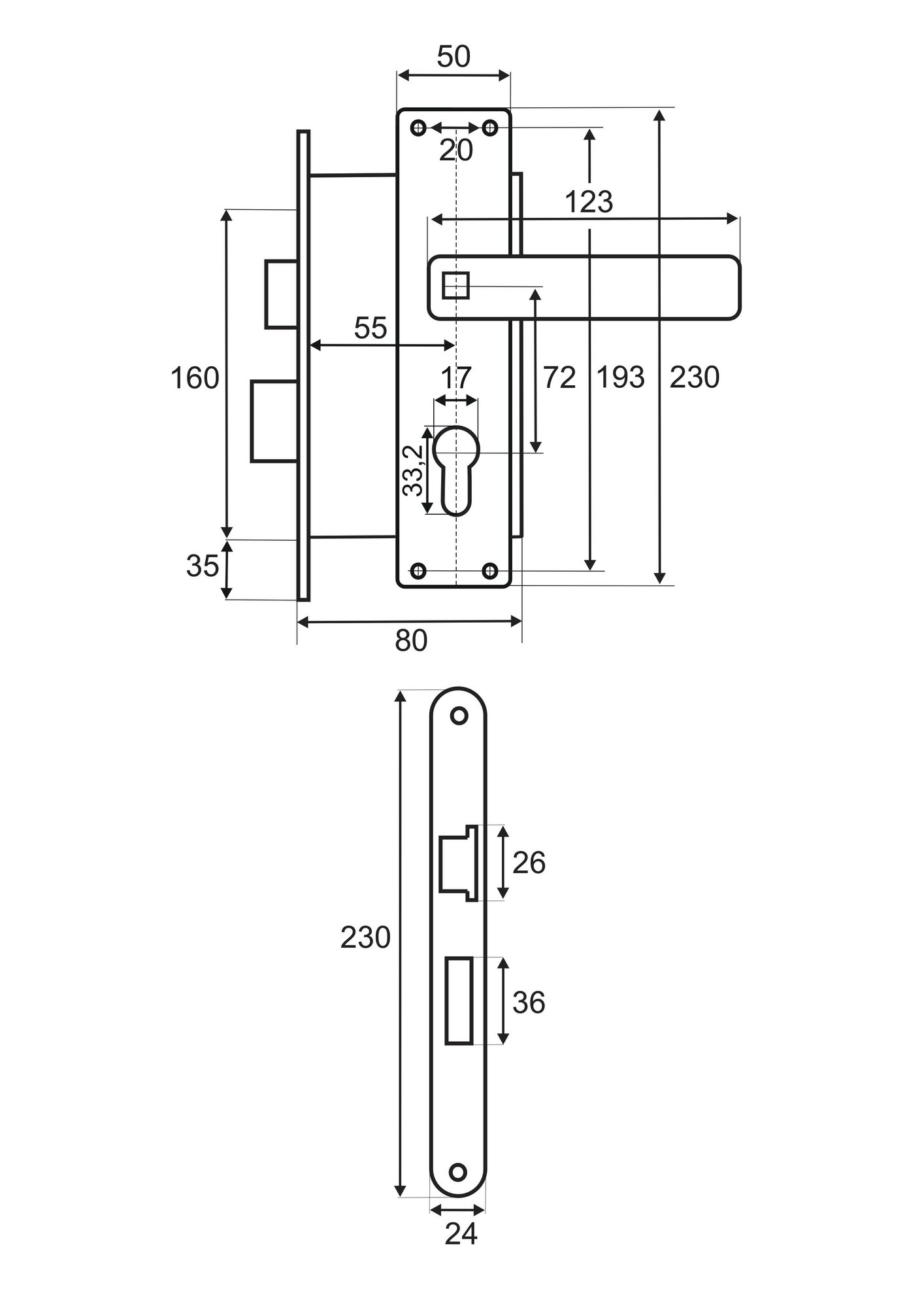 20281 Замок врезной в комплекте с ручкой на планке VЕTTORE 7255-4 SN (Сатин)