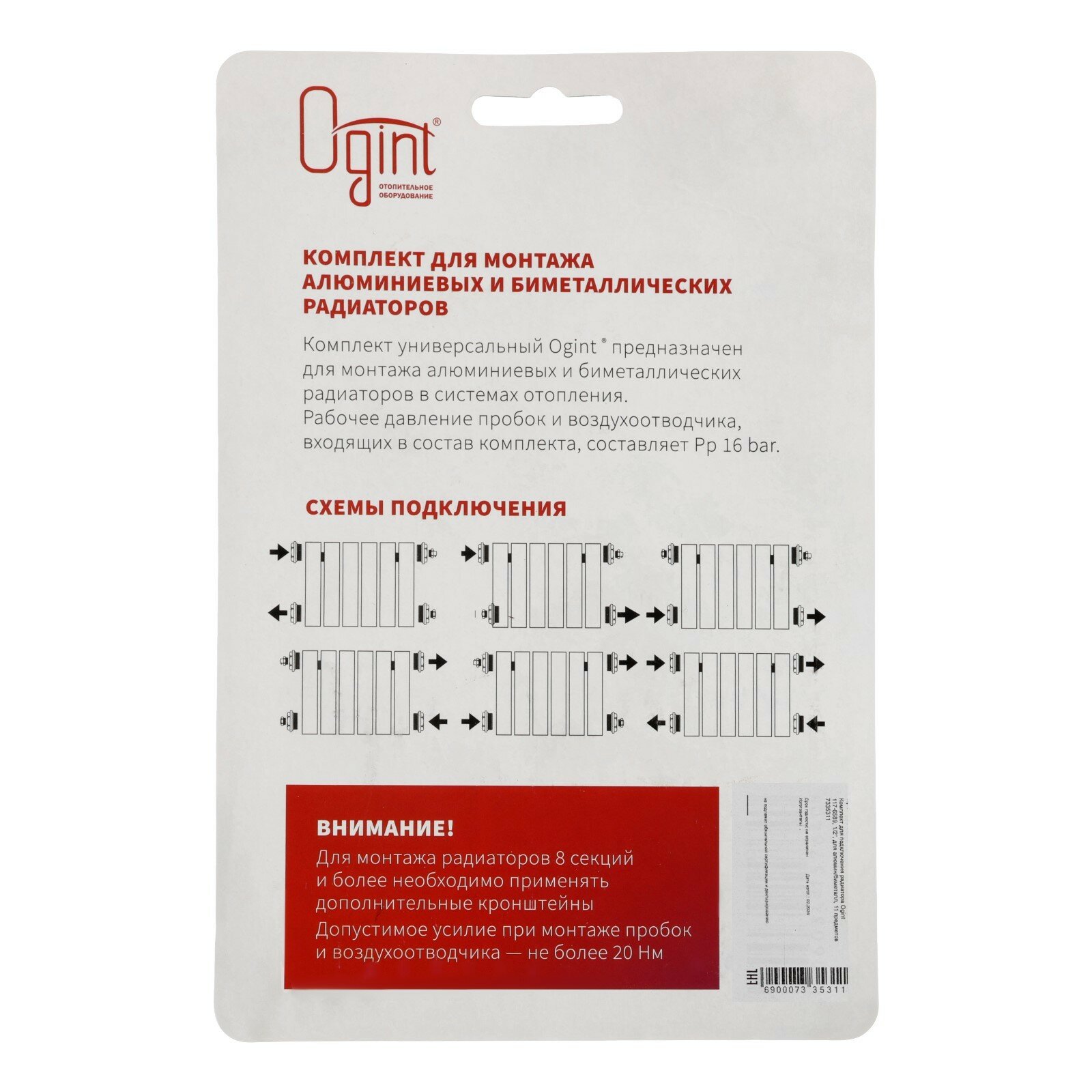 Комплект монтажный 1/2" для алюминиевых и биметаллических радиаторов 11 предметов с 2-мя кронштейнами (в блистере) Ogint А015-15 интересное: