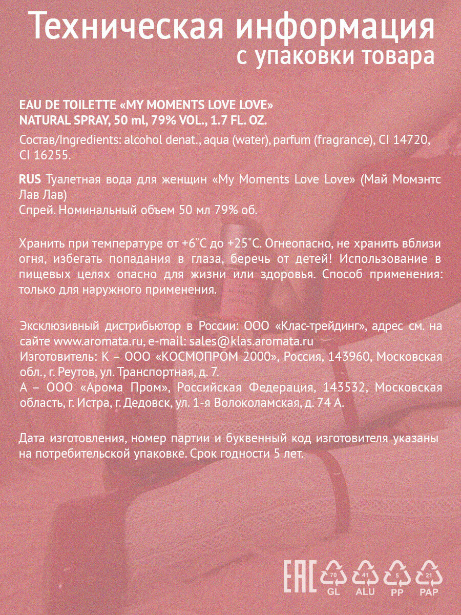 You&World Туалетная вода женская My Moments Love Love 50мл интересное: