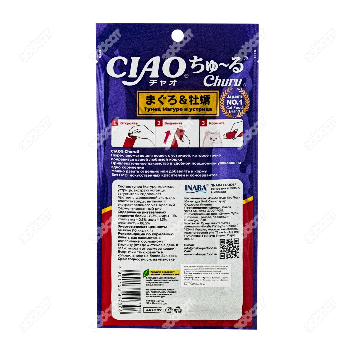Купить Inaba Ciao Churu Лакомство для кошек в виде пюре из Тунца Магуро и Устрицы, 4*14 г.