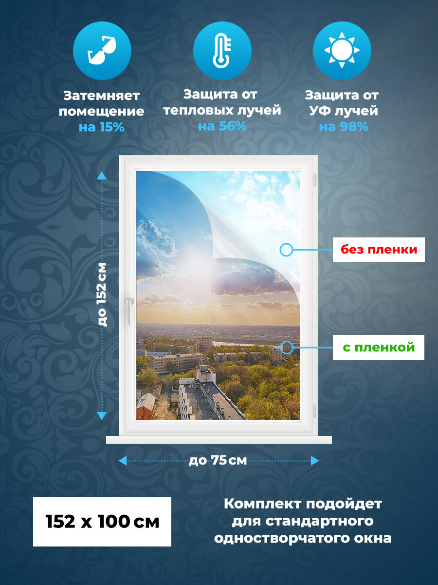 Солнцеотражающая пленка на окно. Пленка тонировочная для окон (комплект) 152х75 - 3шт