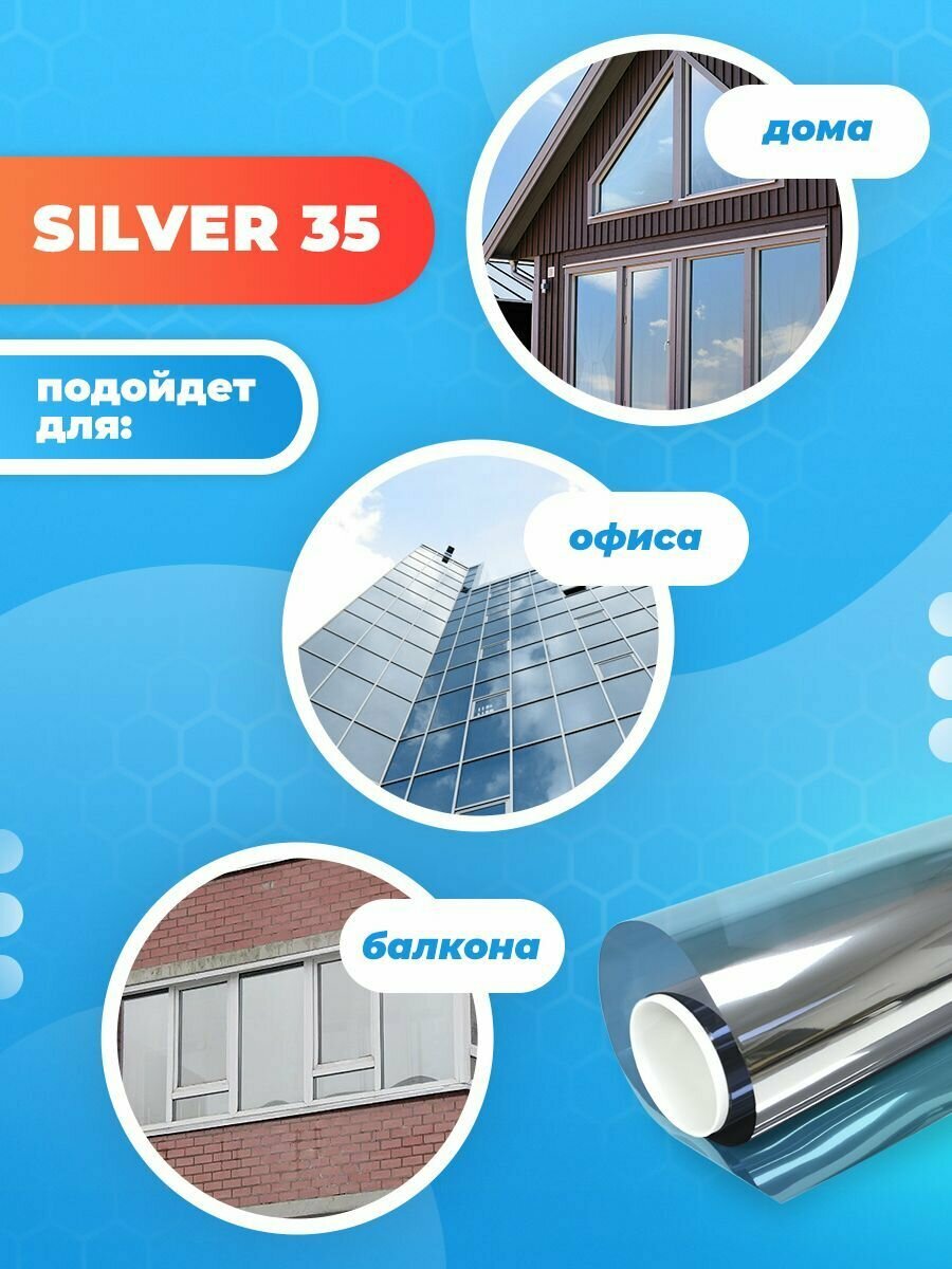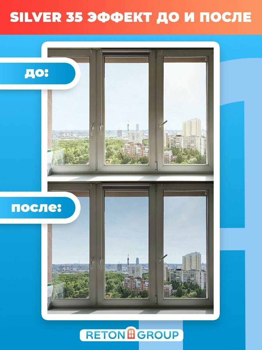 Пленка для окон солнцезащитная Silver 35 Reton Group. Пленка самоклеющаяся на окна (серебристая) - 100х250 см