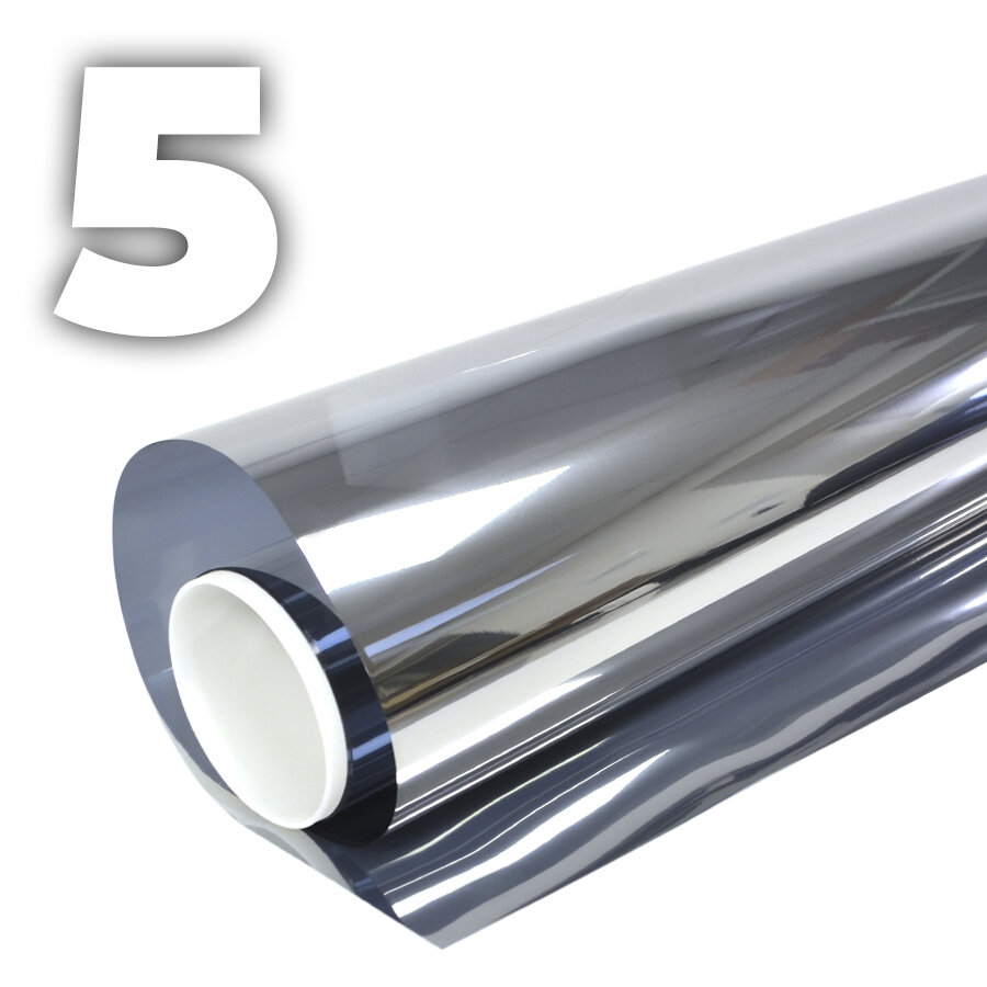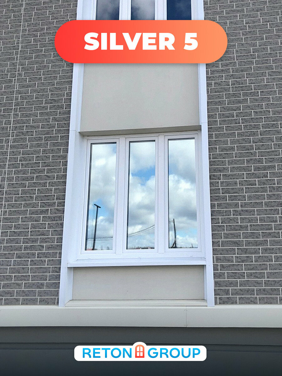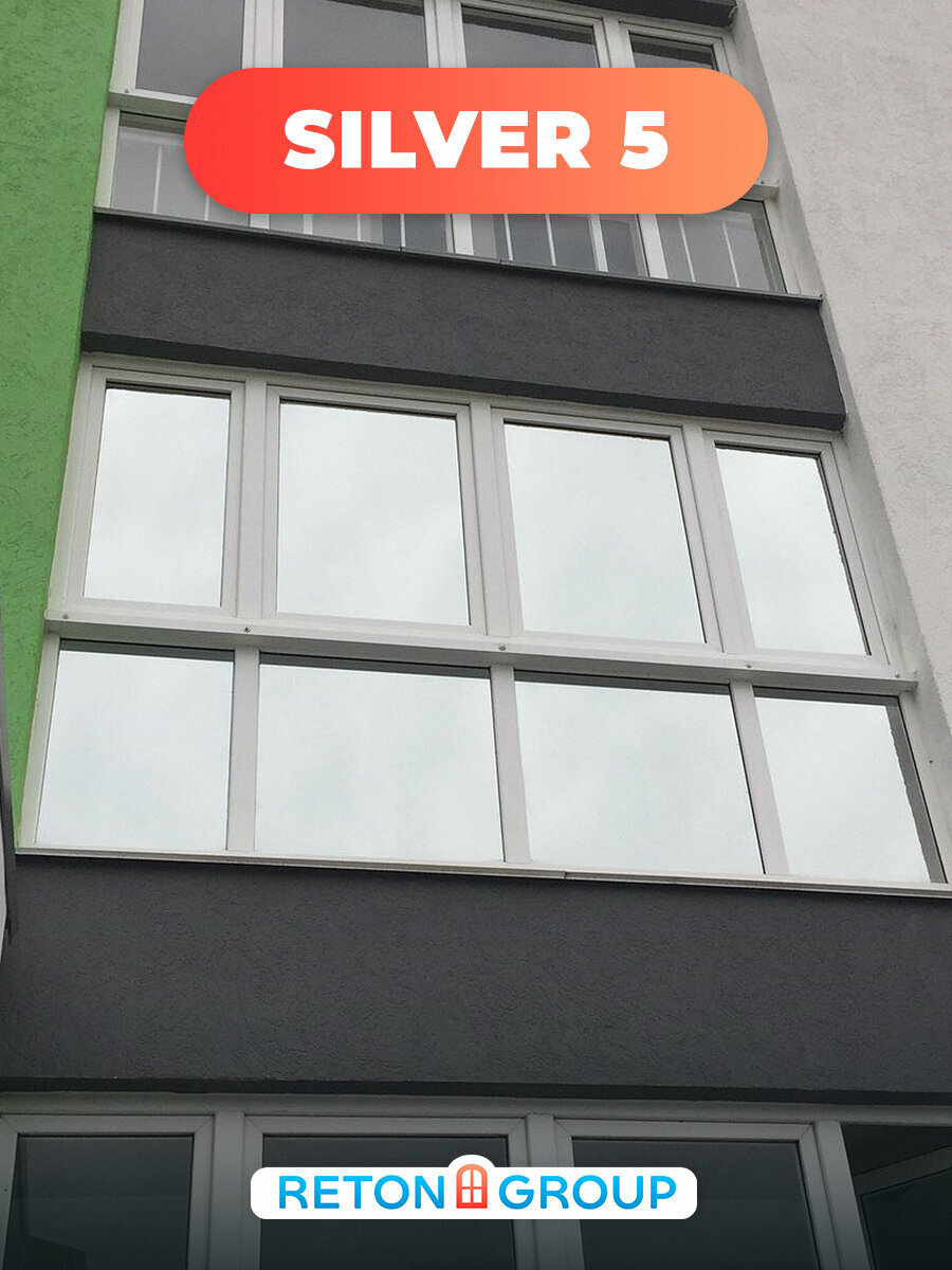 Пленка для окон солнцезащитная зеркальная Silver 5 Reton Group. Пленка от солнца (серебристая) . Рулон 75х450 см.